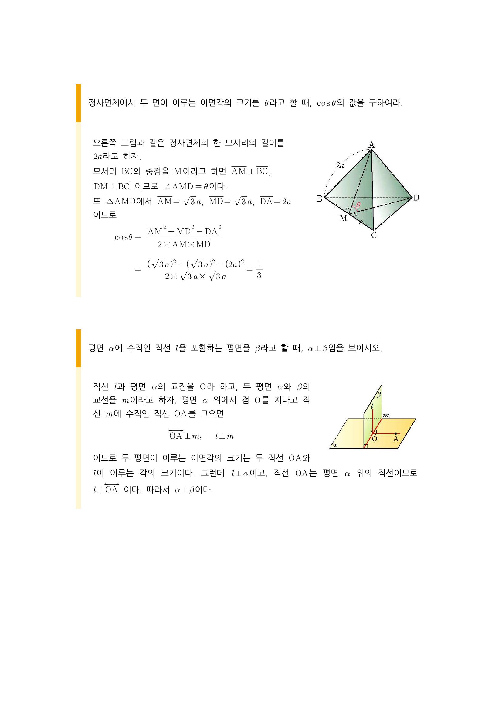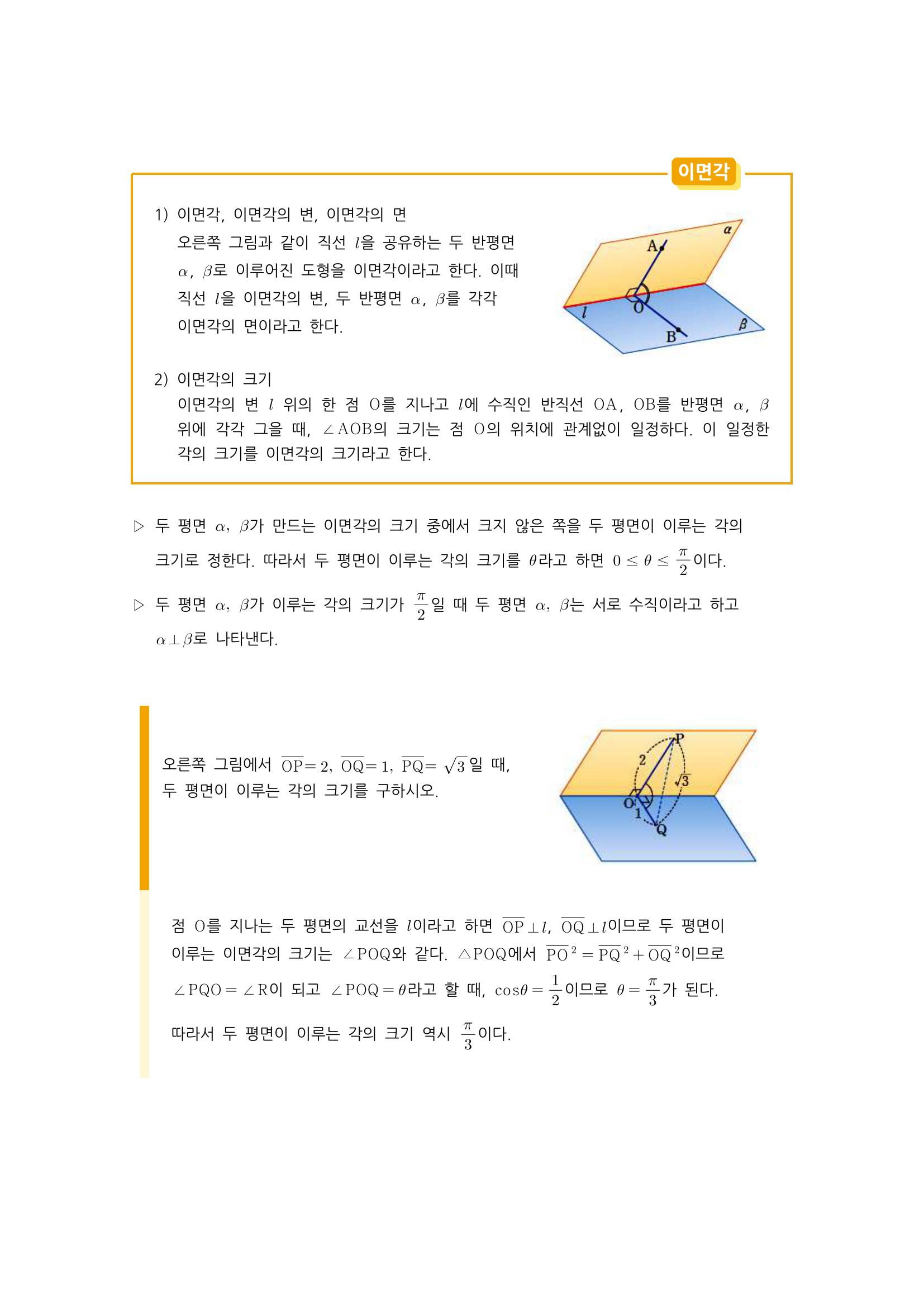 수학 개념 정리/공식 : 삼수선 정리, 이면각 본문