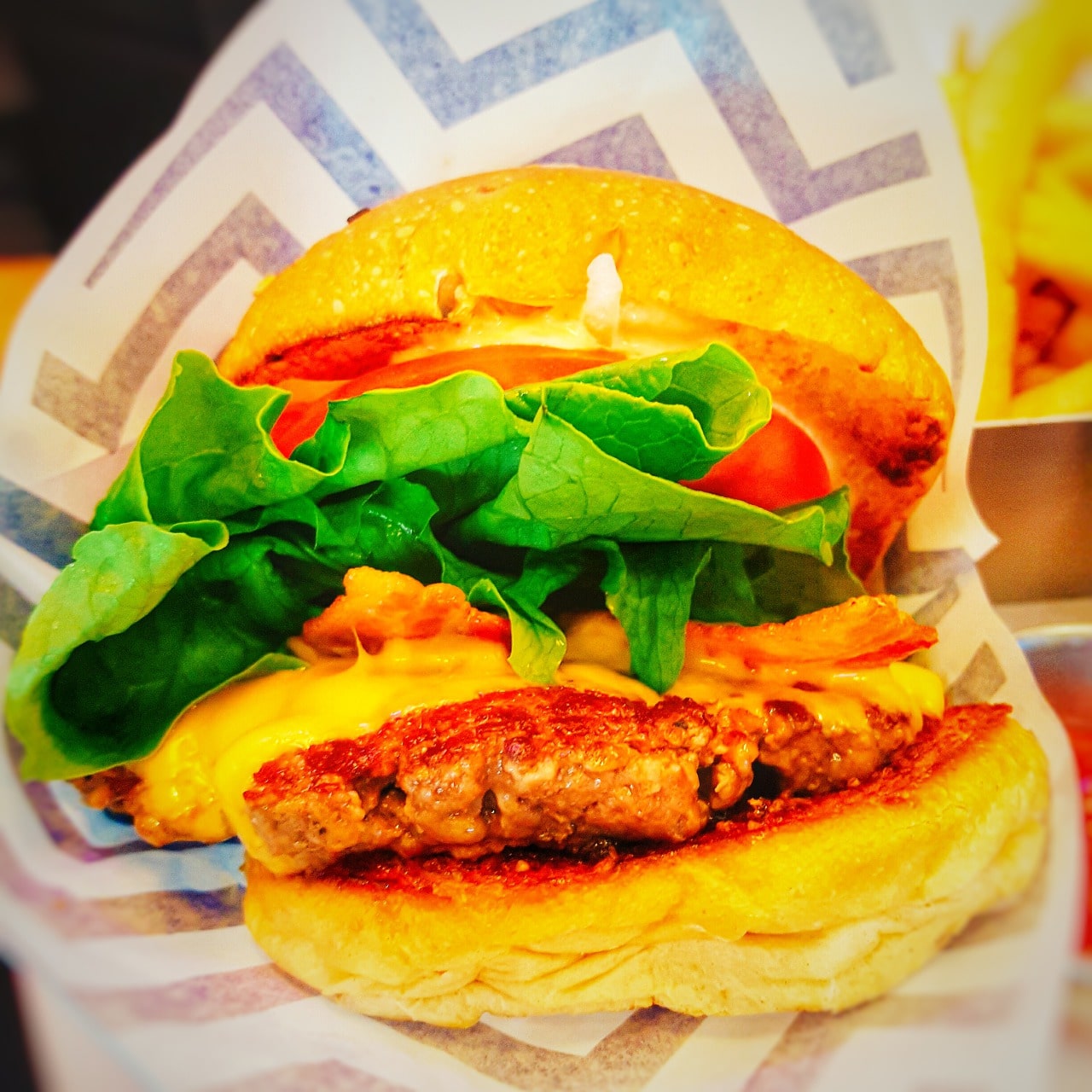 Above is 9ounce burger Jr. Don't order this. Vegetables(tomatoes and onions) were seperated from the burger. I thought it could have to do with allergy issues.. but you can check what ingredients are going to be included inside the burger in the menu. That makes me even confusing why they seperated vegtables from the burger.