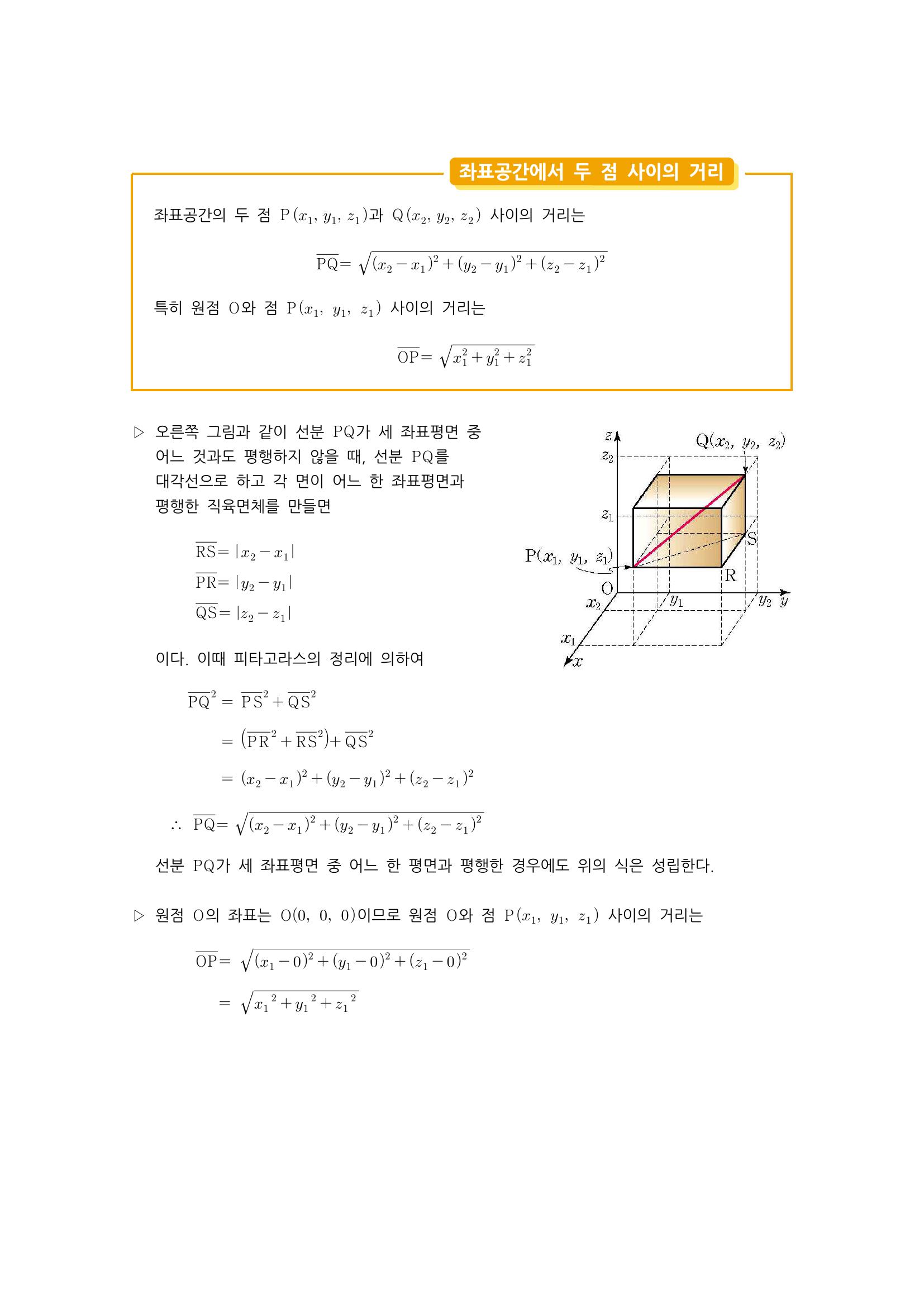 수학 개념 정리/공식 : 공간에서 점의 좌표, 좌표공간에서 두 점 사이의 거리 본문