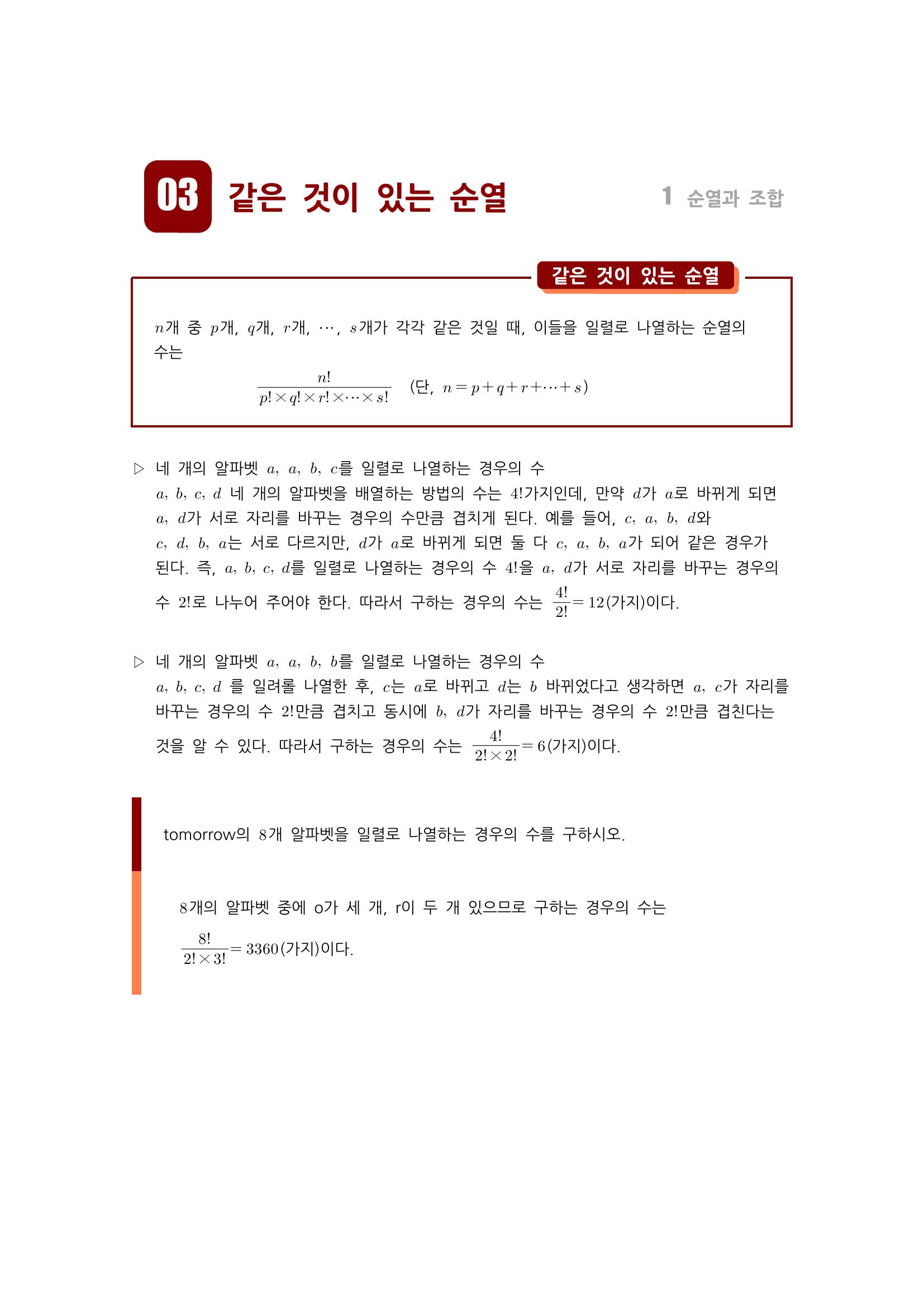 수학 개념 정리/공식 : 원순열, 중복순열, 같은 것이 있는 순열 본문