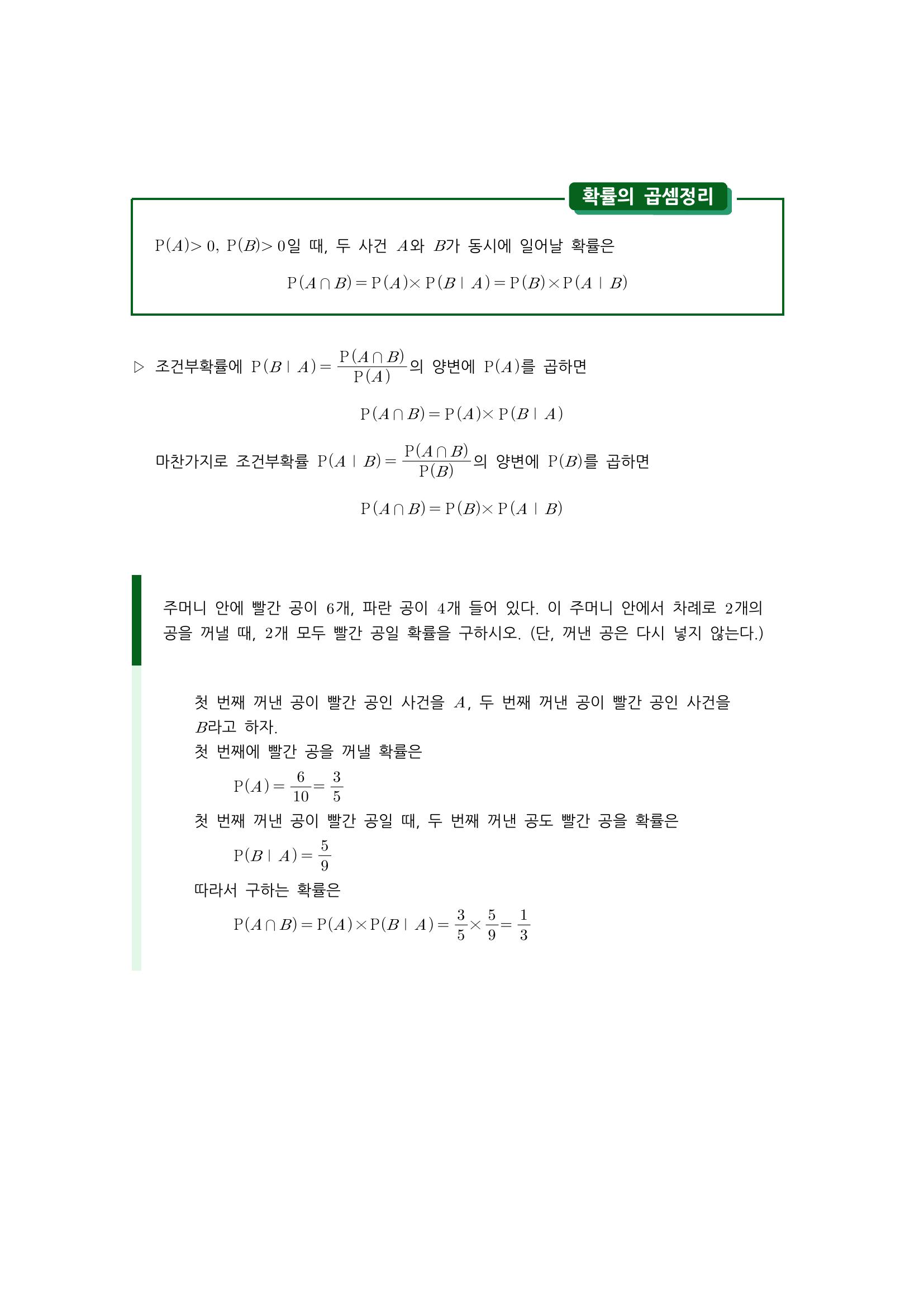 수학 개념 정리/공식 : 조건부확률, 확률의 곱셈정리 본문