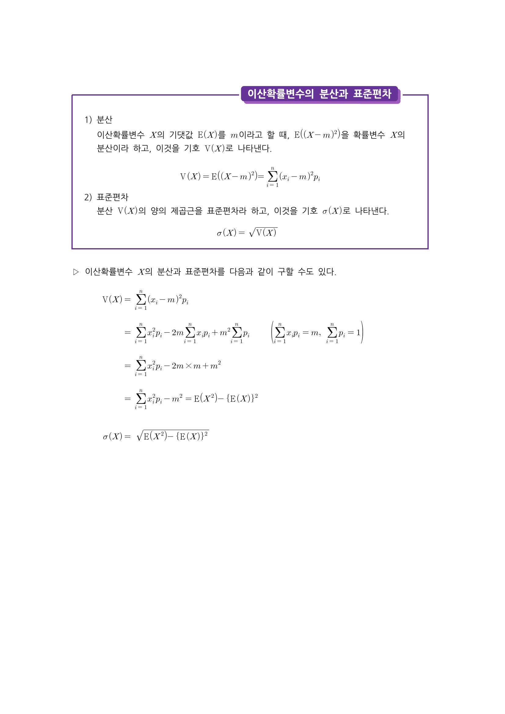 수학 개념 정리/공식 : 이산확률변수의 기댓값, 이산확률변수의 분산과 표준편차, 이산확률변수의 평균, 분산, 표준편차의 성질 본문