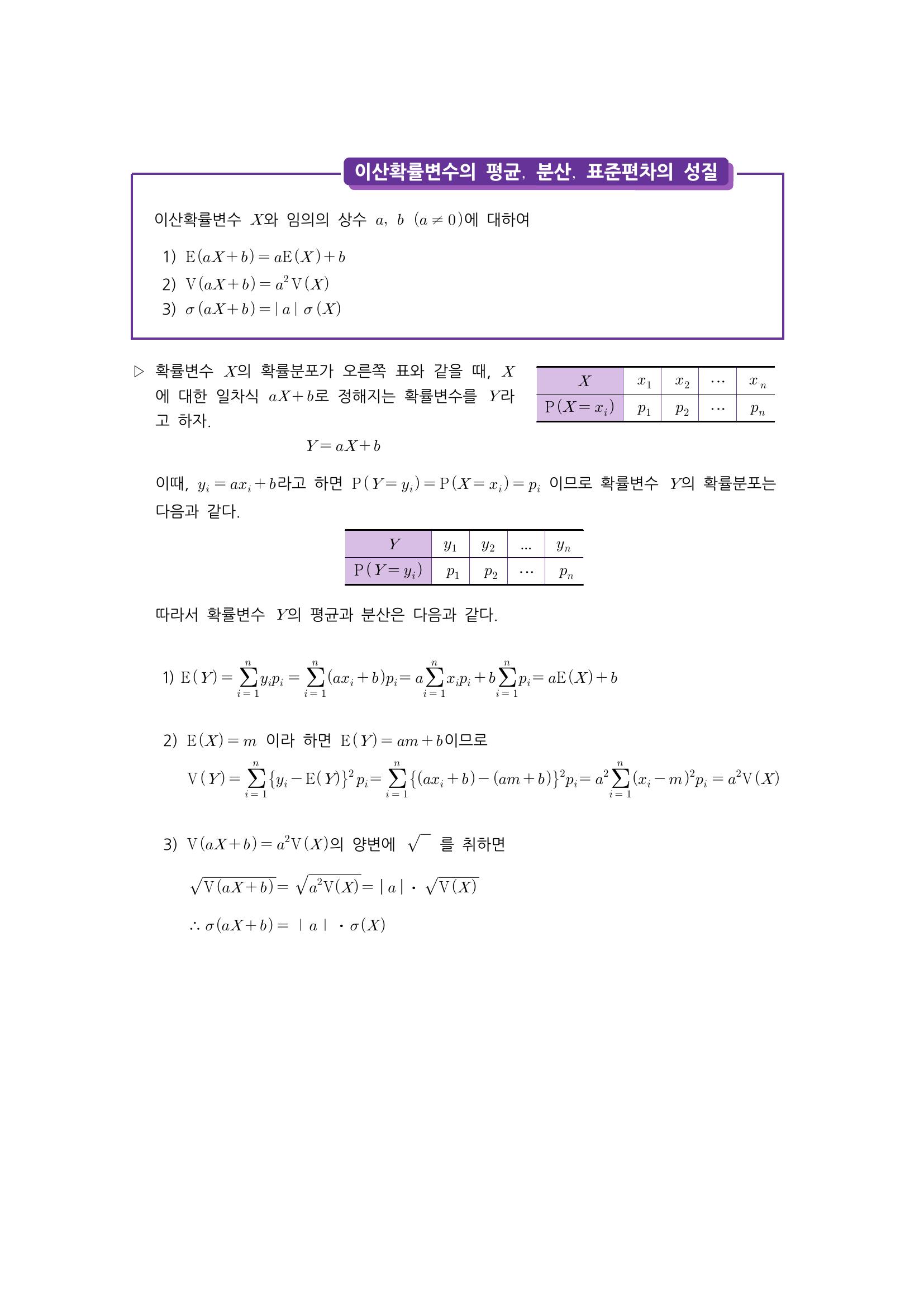 수학 개념 정리/공식 : 이산확률변수의 기댓값, 이산확률변수의 분산과 표준편차, 이산확률변수의 평균, 분산, 표준편차의 성질