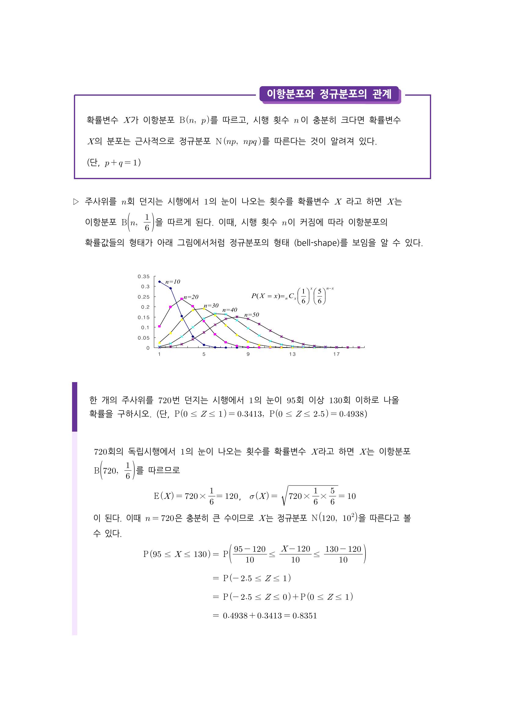 수학 개념 정리/공식 : 정규분포, 정규분포 곡선의 성질, 표준정규분포, 정규분포의 표준화, 이항분포와 정규분포의 관계