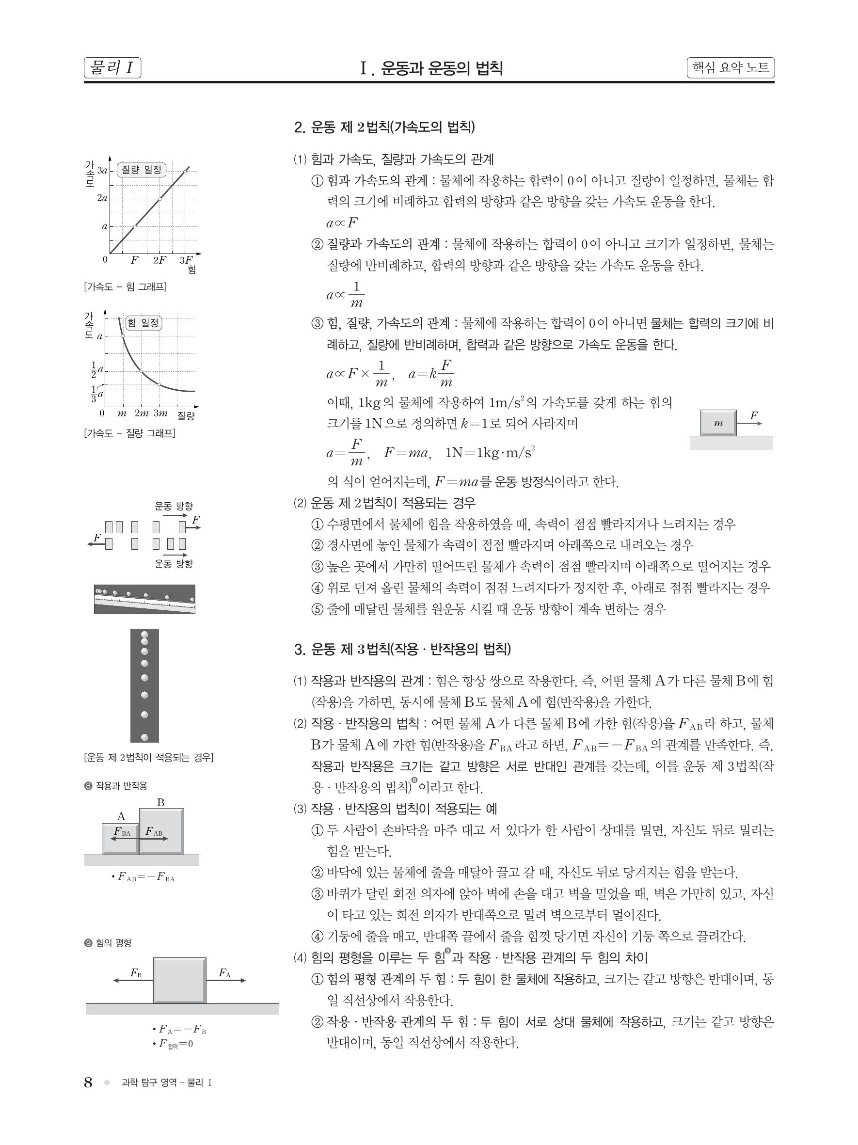 핵심 개념 : 이동 거리와 변위, 평균 속력과 순간 속력, 상대 속도, 가속도 운동, 등가속도 운동, 운동의 기록(다중 섬광 사진), 힘의 합성, 힘의 합력, 운동 제 1법칙(관성의 법칙), 운동 제 2법칙(가속도의 법칙), 운동 제 3법칙(작용/반작용의 법칙)