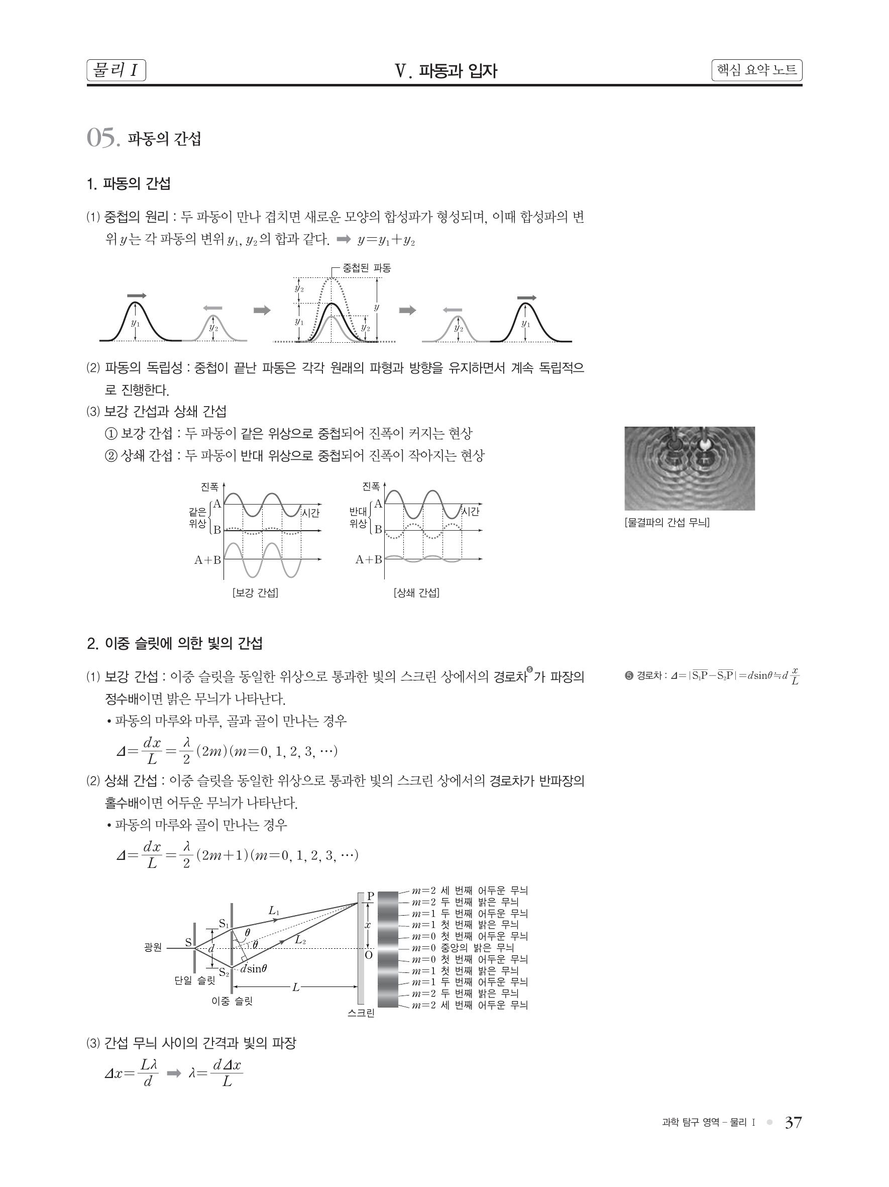 물리 핵심 개념 정리 : 파동의 간섭(보강 간섭, 상쇄 간섭), 이중 슬릿에 의한 빛의 간섭, 파동의 회절, 빛의 회절 본문