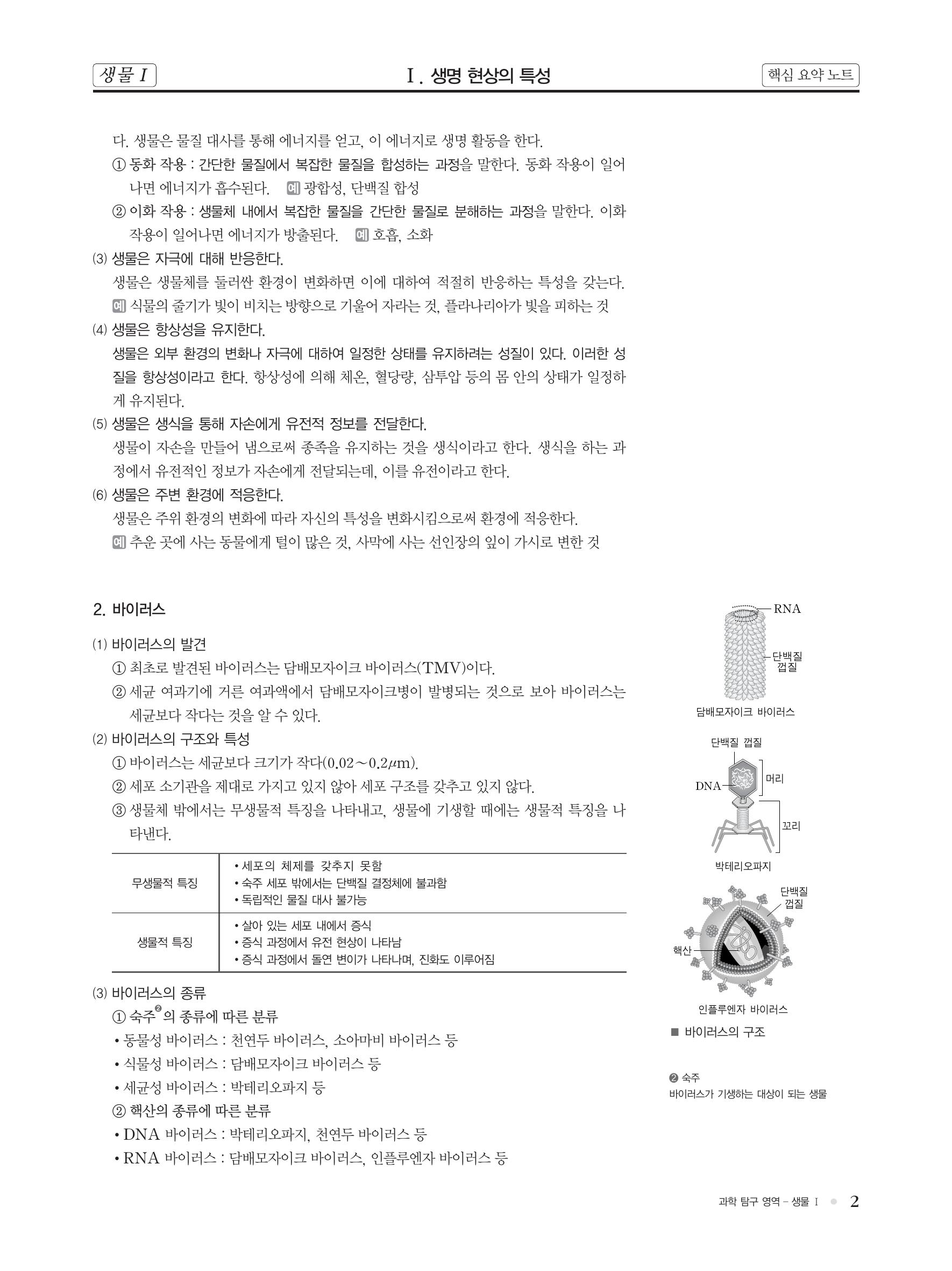 생물 핵심 개념 정리 : 생물의 특성, 물질 대사와 에너지 대사, 바이러스의 구조와 특성, 바이러스의 종류 본문