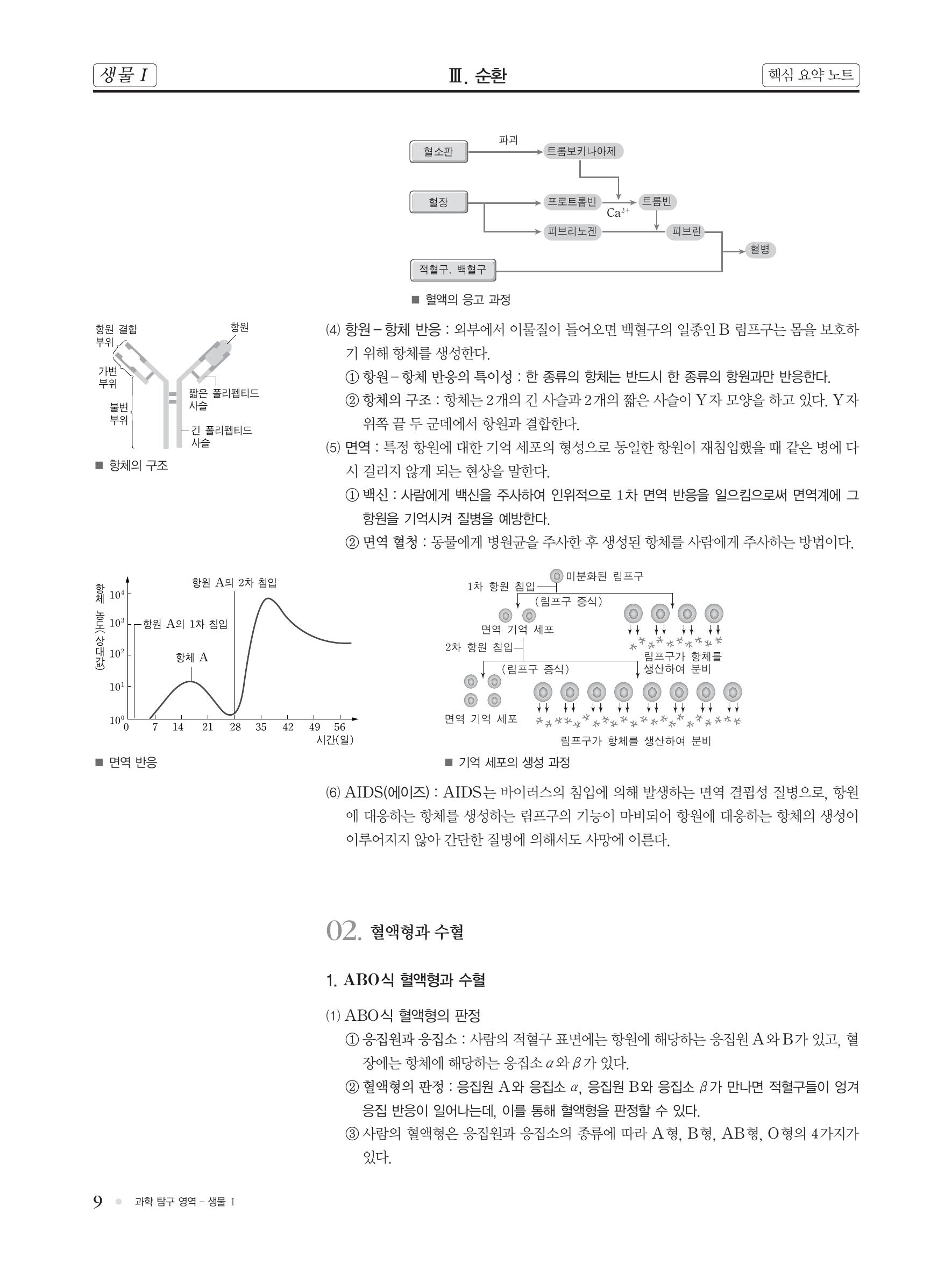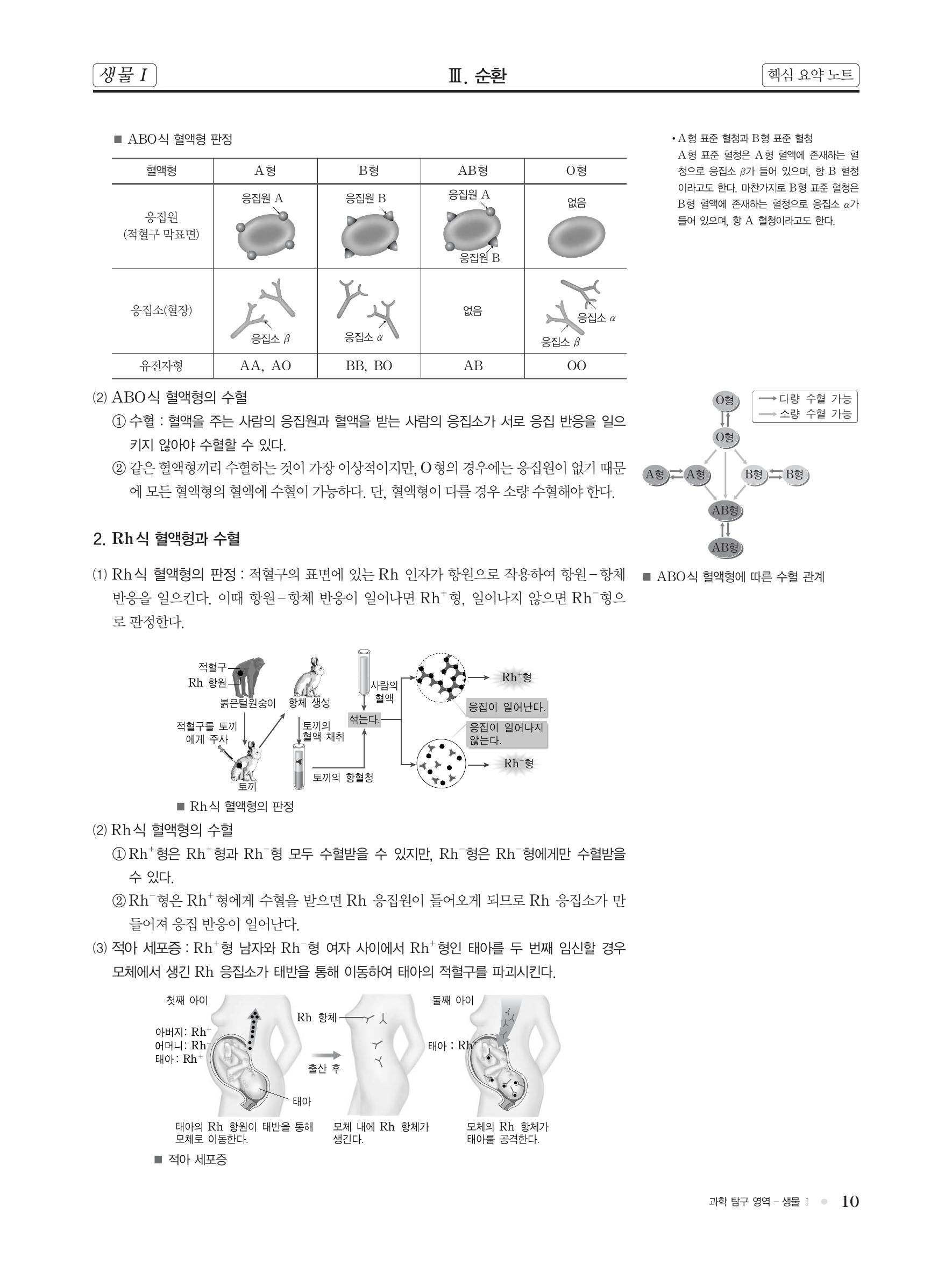생물 핵심 개념 정리 : 혈액의 조성, 조직액과 림프, 혈액의 기능, 항원-항체 반응, ABO식 혈액형과 수혈, Rh식 혈액형과 수혈 본문