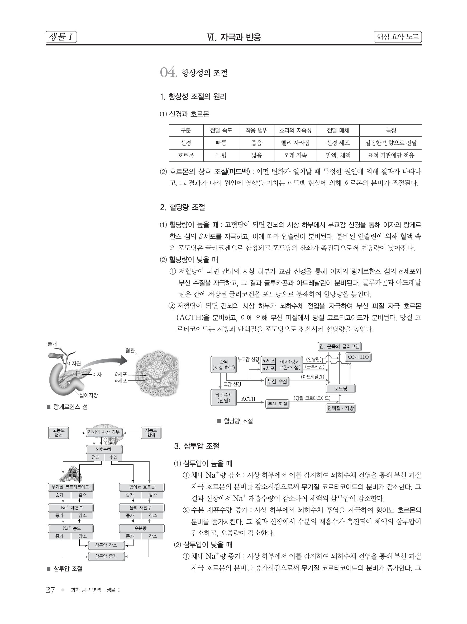 생물 핵심 개념 정리 : 항상성 조절의 원리, 혈당량 조절, 삼투압 조절, 체온 조절 본문
