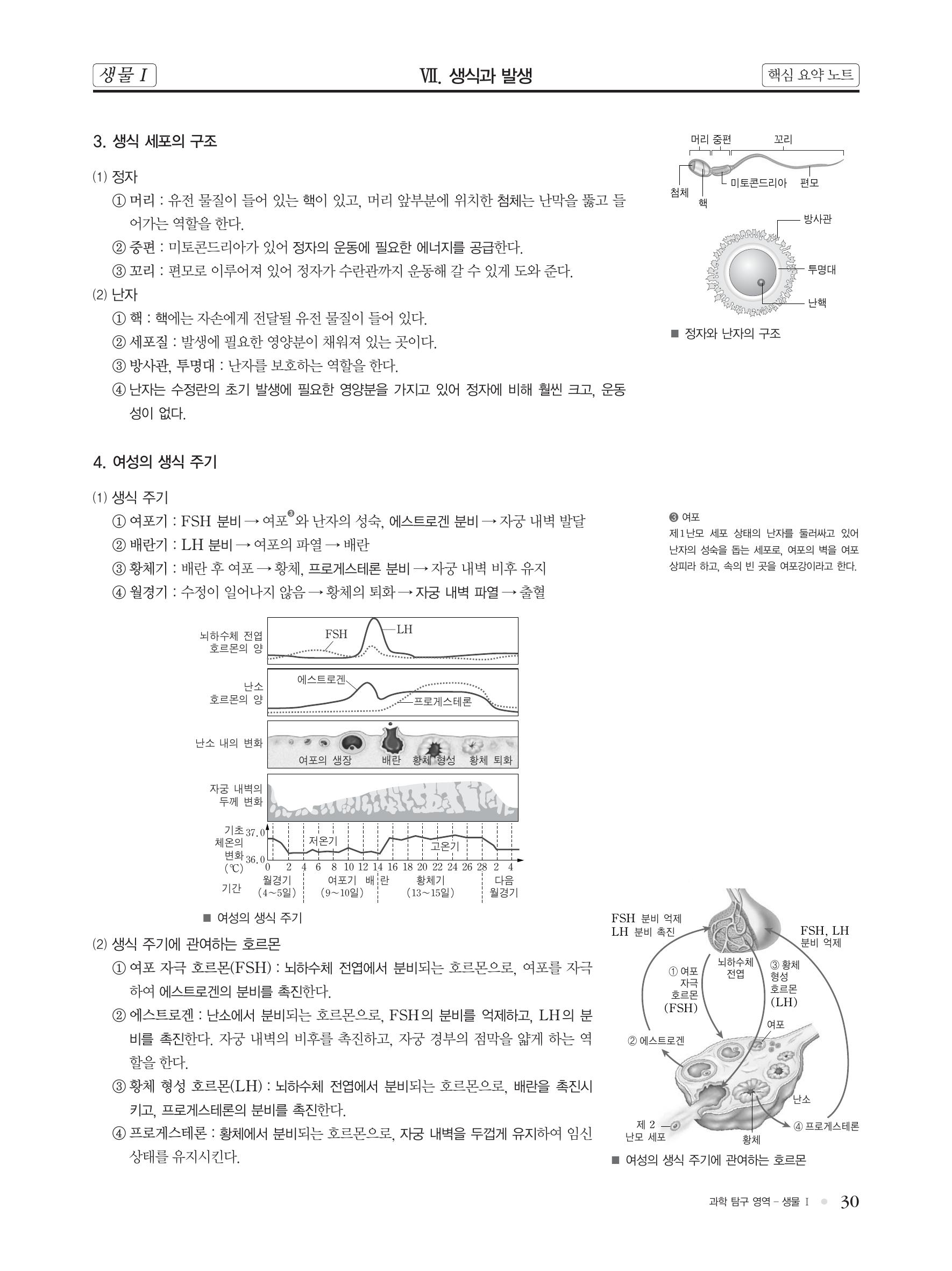 생물 핵심 개념 정리 : 남성의 생식 기관(정소, 부정소, 수정관, 전립선), 여성의 생식 기관(난소, 수란관, 자궁, 질), 생식 세포(정자, 난자), 생식 주기(여포기, 배란기, 황체기, 월경기)