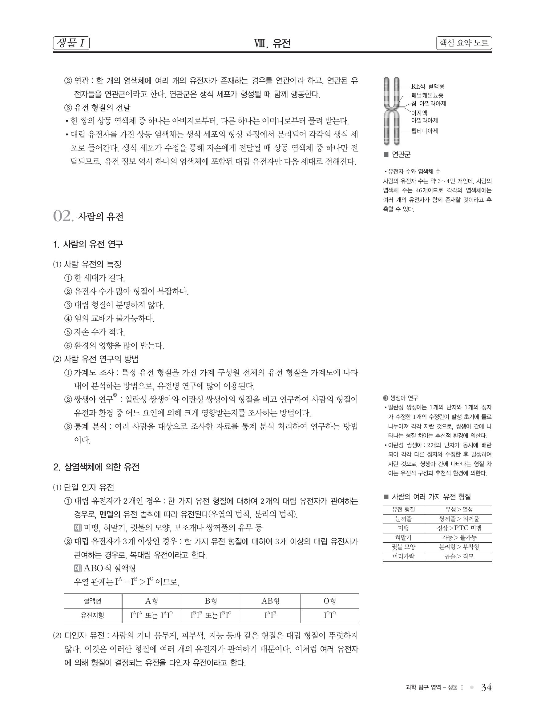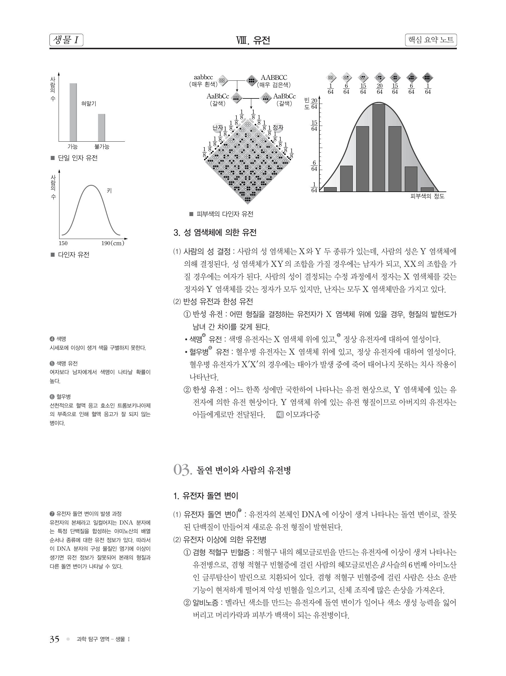 생물 핵심 개념 정리 : 멘델의 유전 가설, 염섹체설, 유전자설, 염색체의 구조, 사람의 유전(단일 인자 유전, 다인자 유전), 반성 유전, 한성 유전, 유전자 돌연 변이, 염색체 돌연 변이, 유전병(..