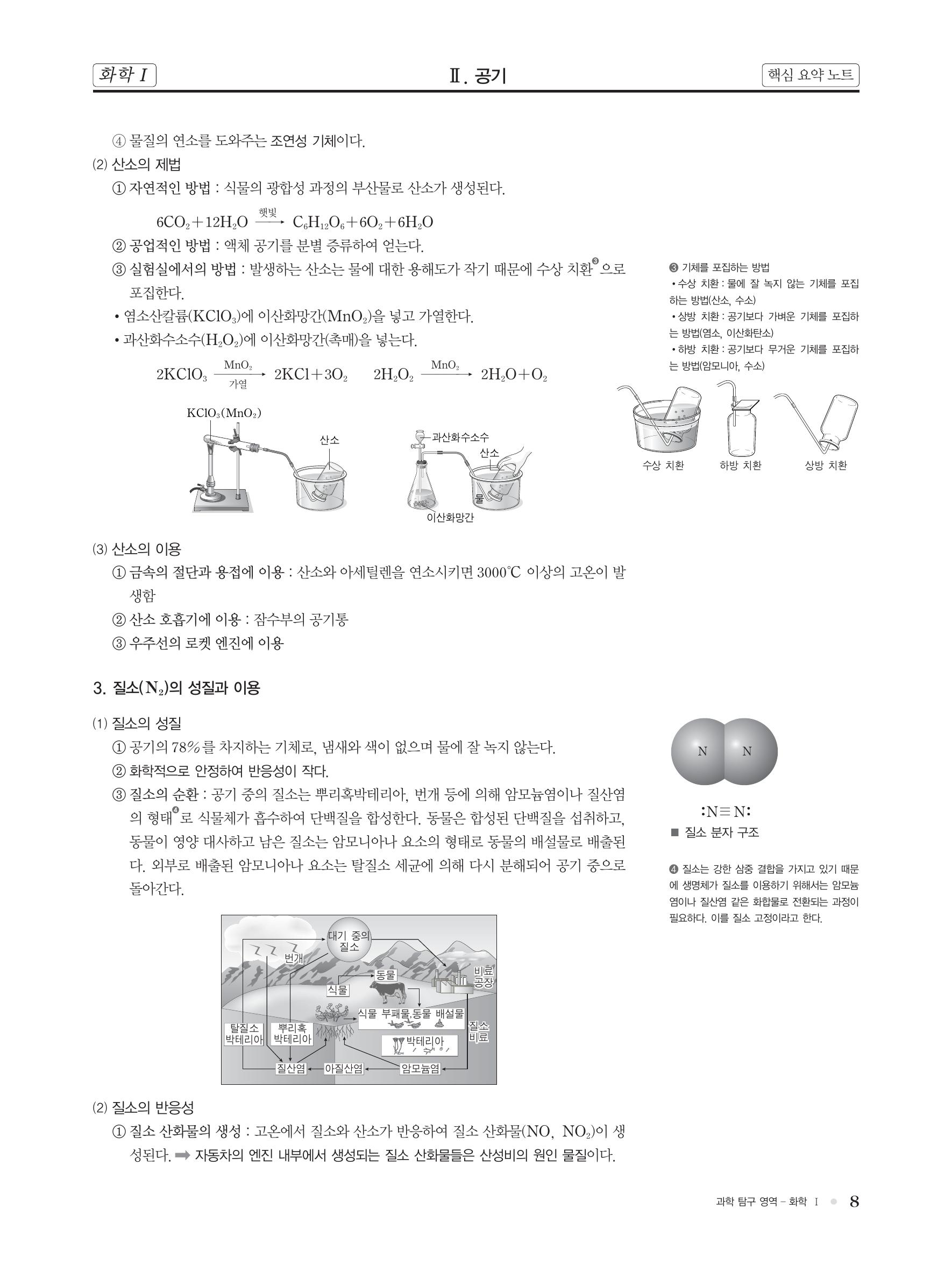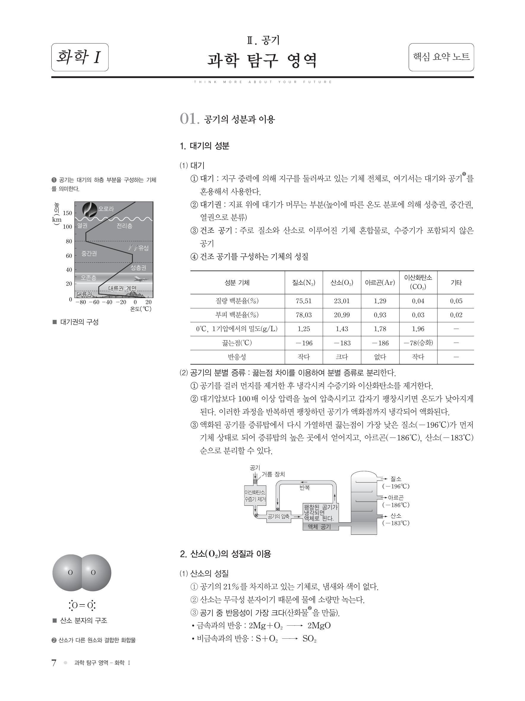 화학 핵심 개념 정리 : 대기의 성분, 산소의 성질, 산소의 제법, 질소의 성질, 질소의 반응성, 이산화탄소의 성질, 이산화탄소의 제법, 비활성 기체의 성질 본문