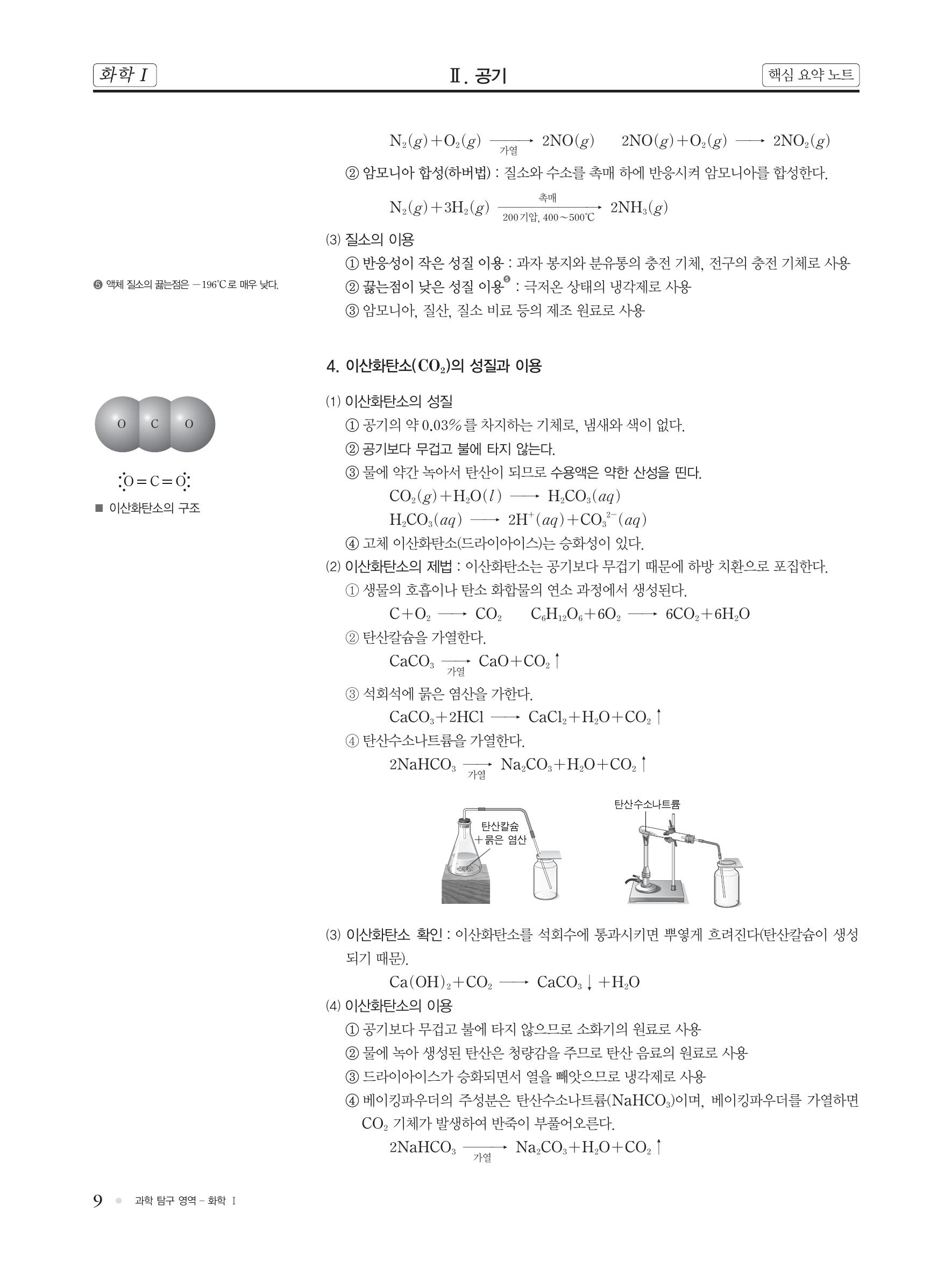 화학 핵심 개념 정리 : 대기의 성분, 산소의 성질, 산소의 제법, 질소의 성질, 질소의 반응성, 이산화탄소의 성질, 이산화탄소의 제법, 비활성 기체의 성질 본문