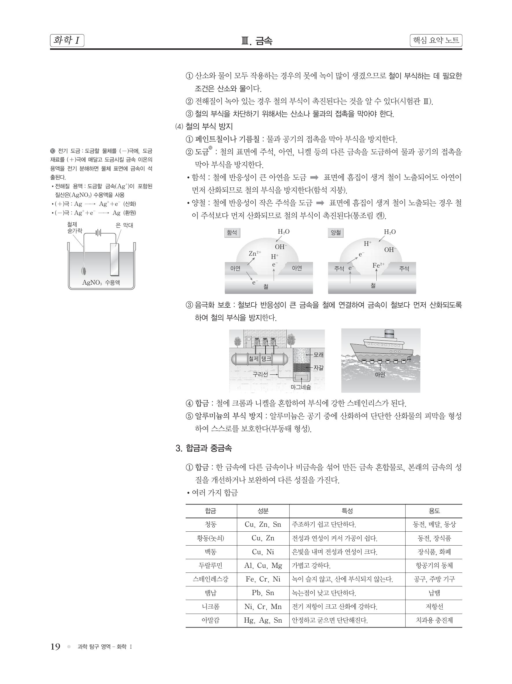 화학 핵심 개념 정리 : 금속의 성질, 금속 결합, 금속의 이용(금, 구리, 철, 알루미늄, 빙정석), 금속의 반응성(이온화 경향), 금속의 부식, 철의 부식 방지(도금, 합석, 양철), 음극화 보호, 합금..