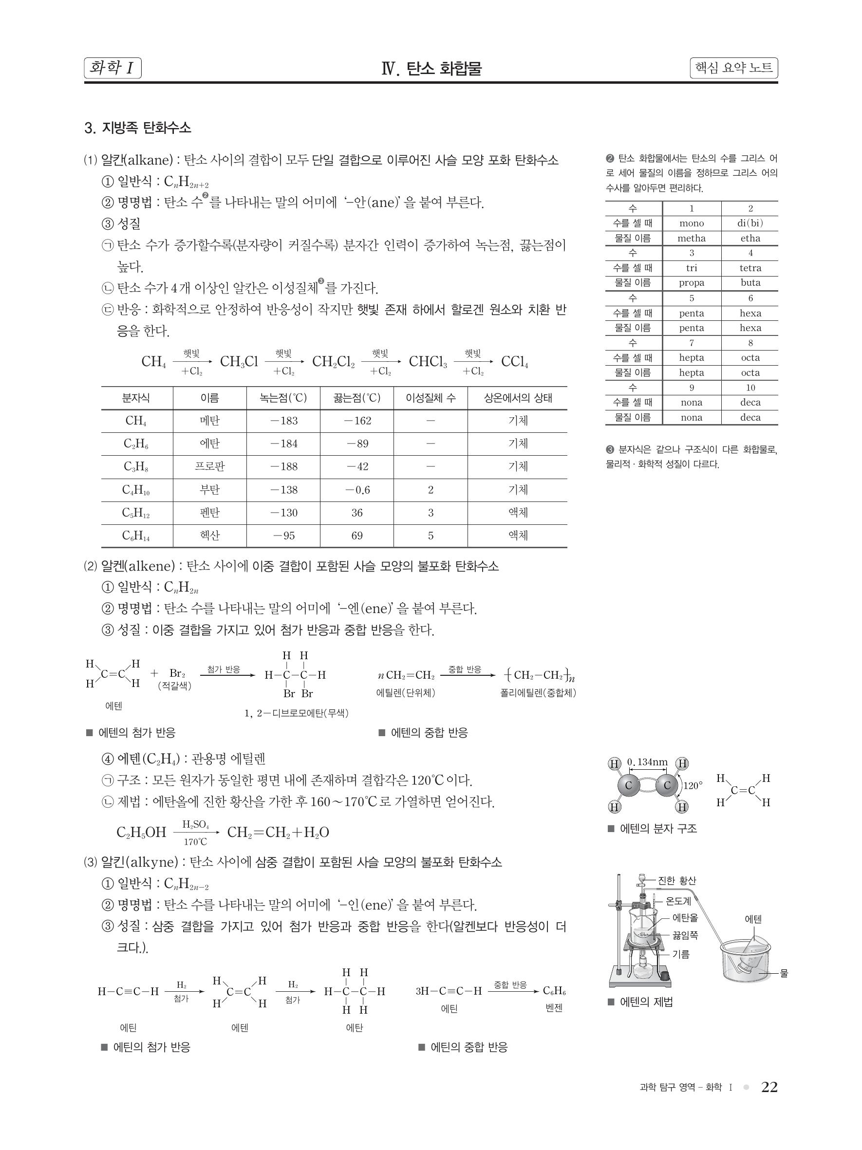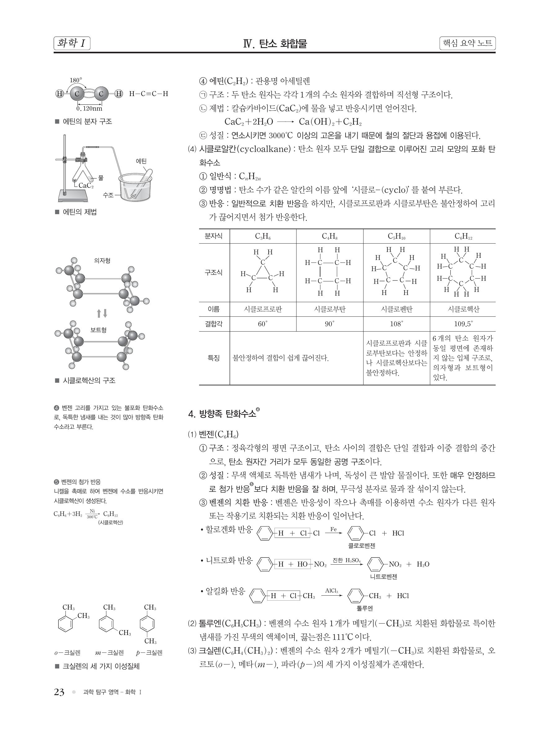 화학 핵심 개념 정리 : 탄소 화합물, 탄화수소, 지방족 탄화수소(알칸, 알켄, 에덴, 알킨, 에틴, 시클로알칸), 방향족 탄화수소(벤젠, 톨루엔, 크실렌) 본문