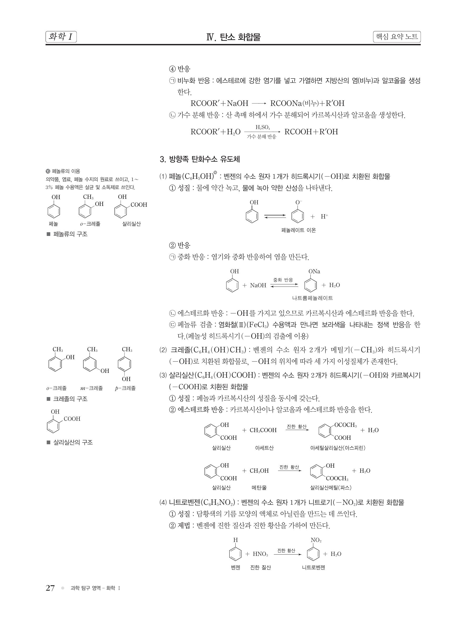 화학 핵심 개념 정리 : 탄화수소 유도체, 지방족 탄화수소 유도체(알코올, 에테르, 알데히드, 케론, 카르복시산, 에스테르), 방향족 탄화수소 유도체(페놀, 크레졸, 살리실산, 니트로벤젠, 아닐..