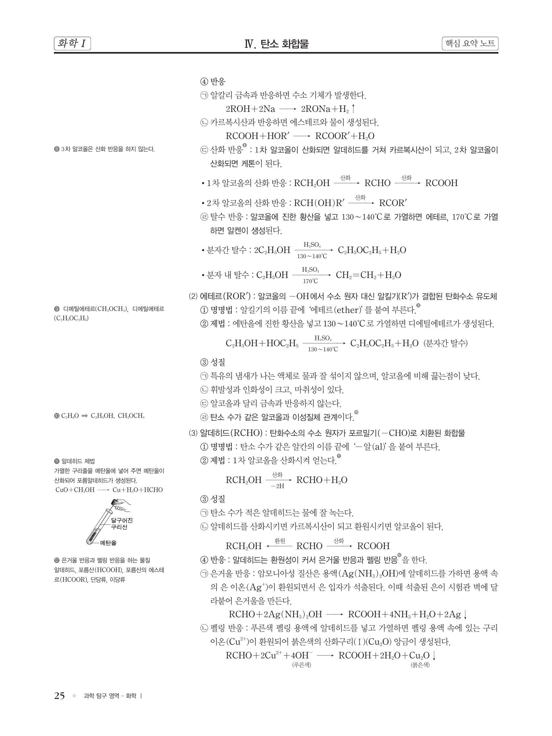 화학 핵심 개념 정리 : 탄화수소 유도체, 지방족 탄화수소 유도체(알코올, 에테르, 알데히드, 케론, 카르복시산, 에스테르), 방향족 탄화수소 유도체(페놀, 크레졸, 살리실산, 니트로벤젠, 아닐..