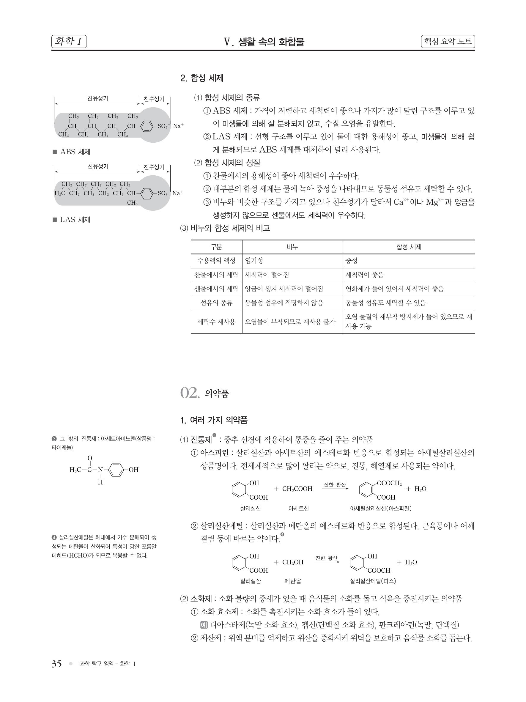 화학 핵심 개념 정리 : 비누의 제조, 비누화 반응, 비누의 구조,비누 분자의 배열, 비누의 단점, 합성 세제(ABS 세제, LAS 세제), 진통제(살리실산에틸), 소화제(소화 효소제, 제산제, 항생제, 항암.. 본문