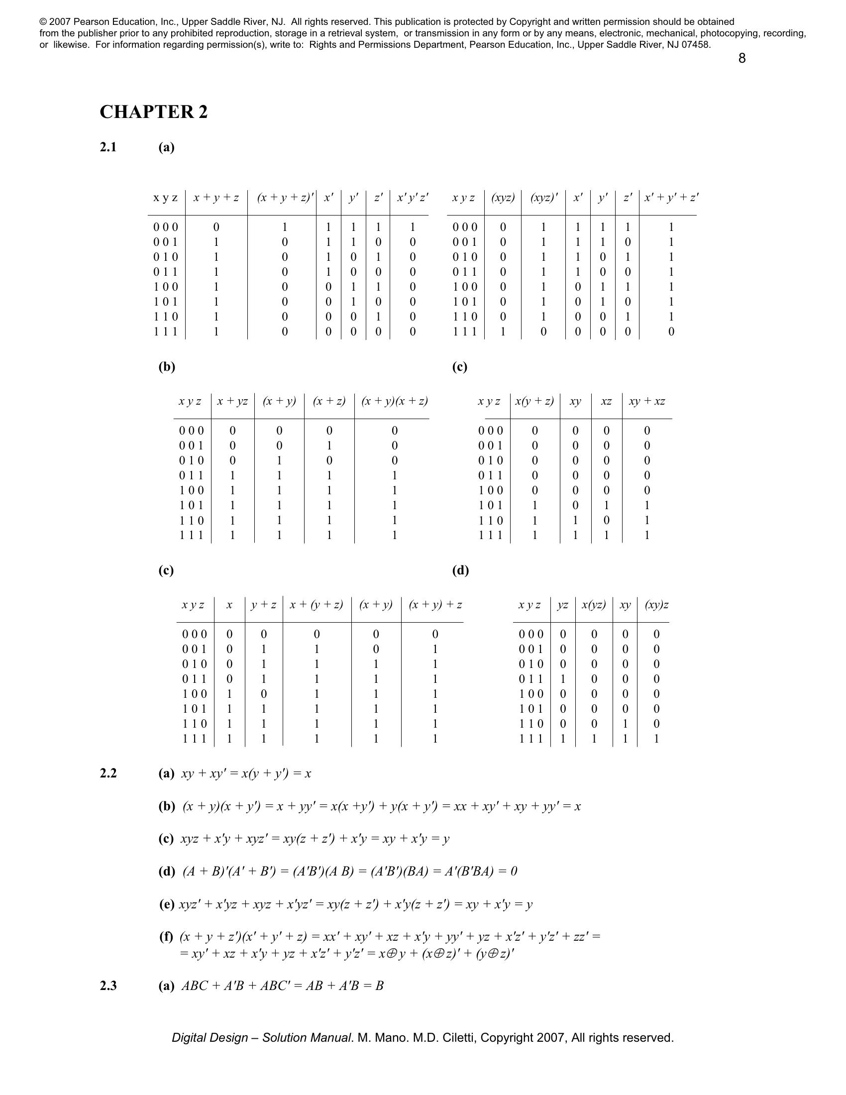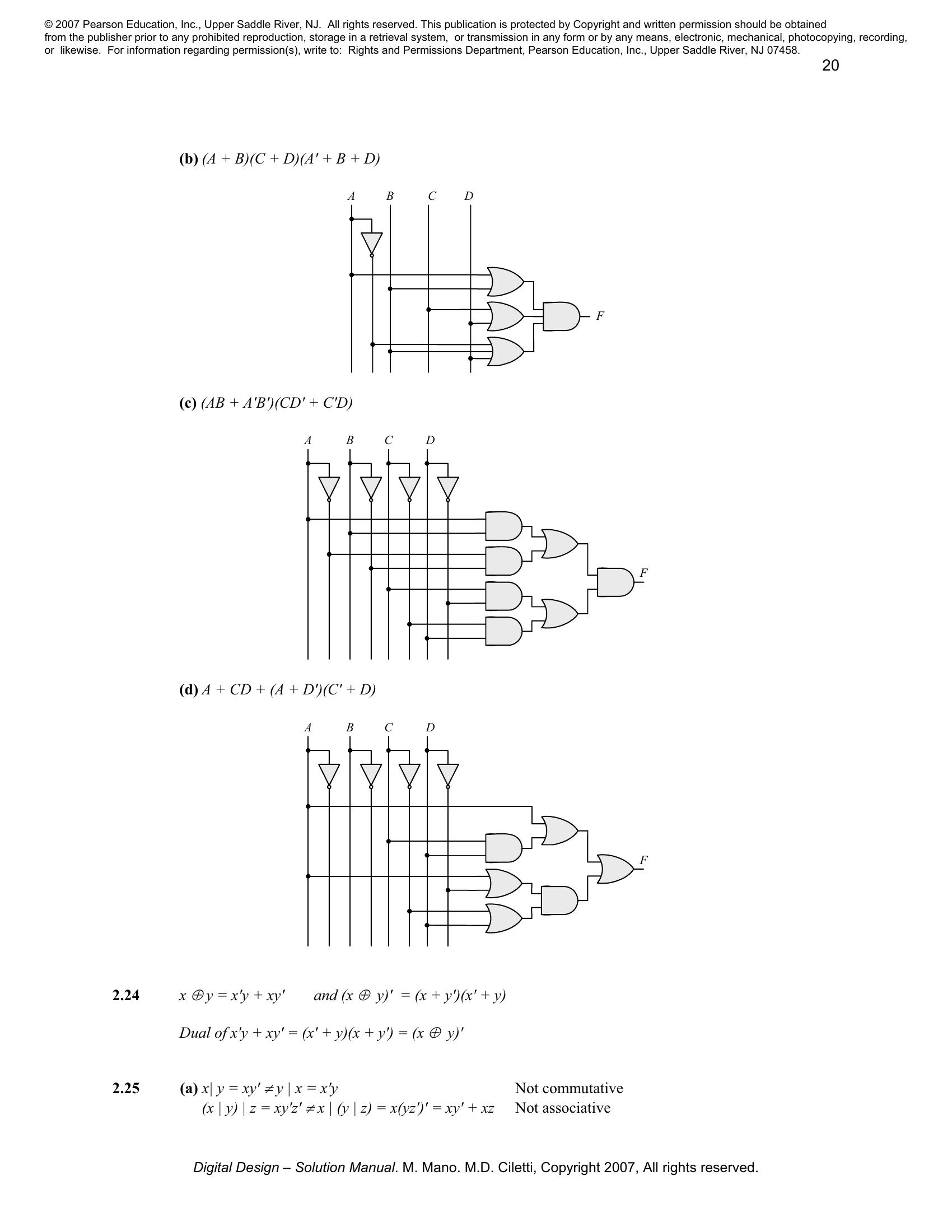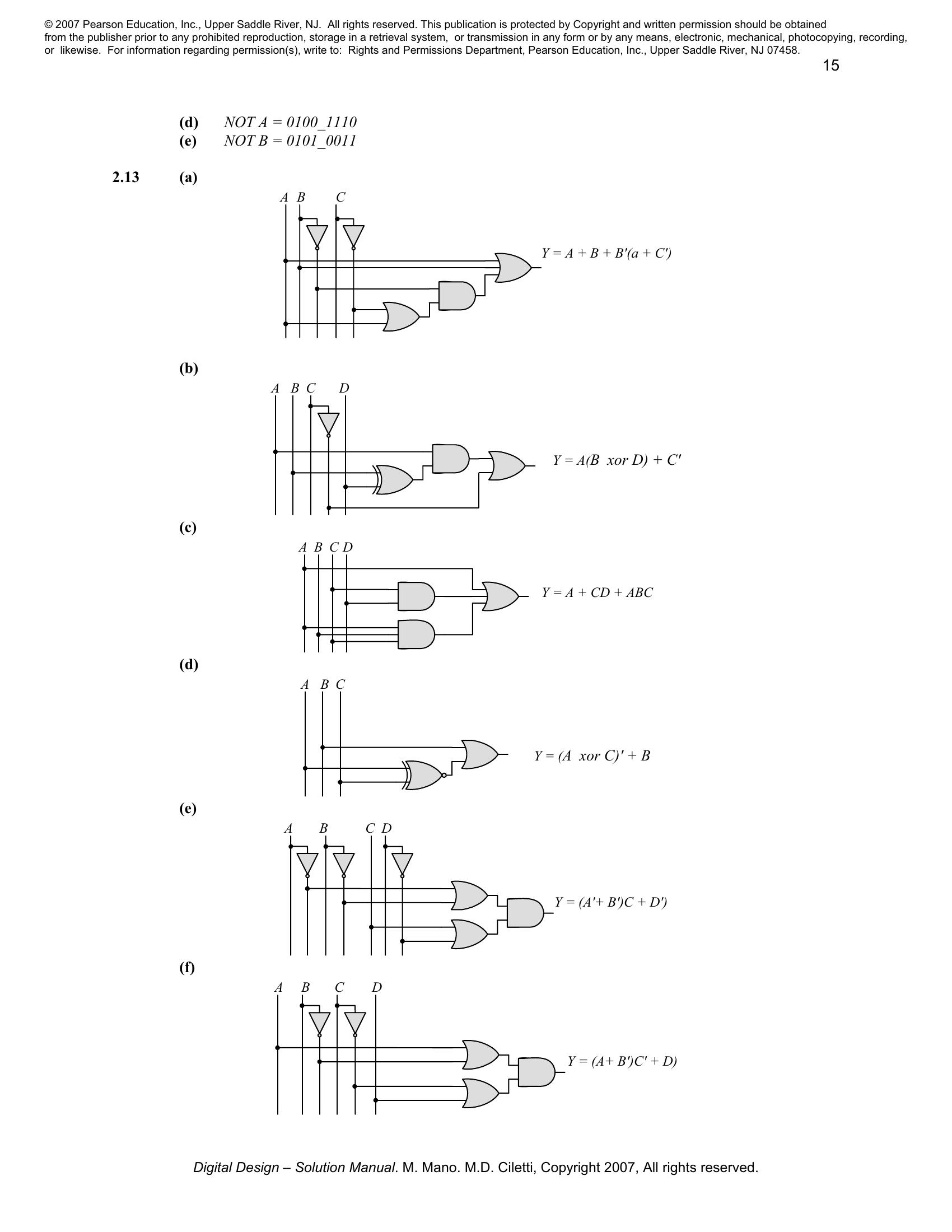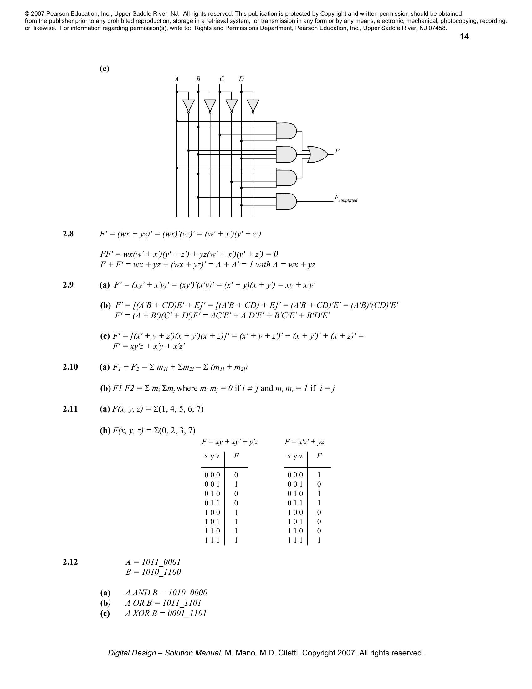 Solution manual to Digital Logic And Computer Design by M. Morris Mano (Chapter 2)