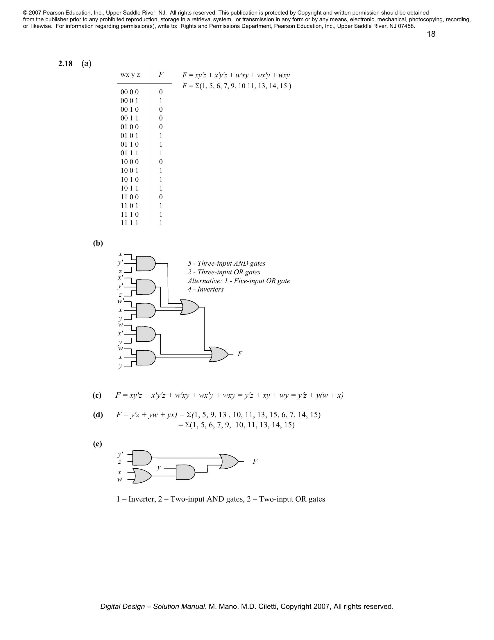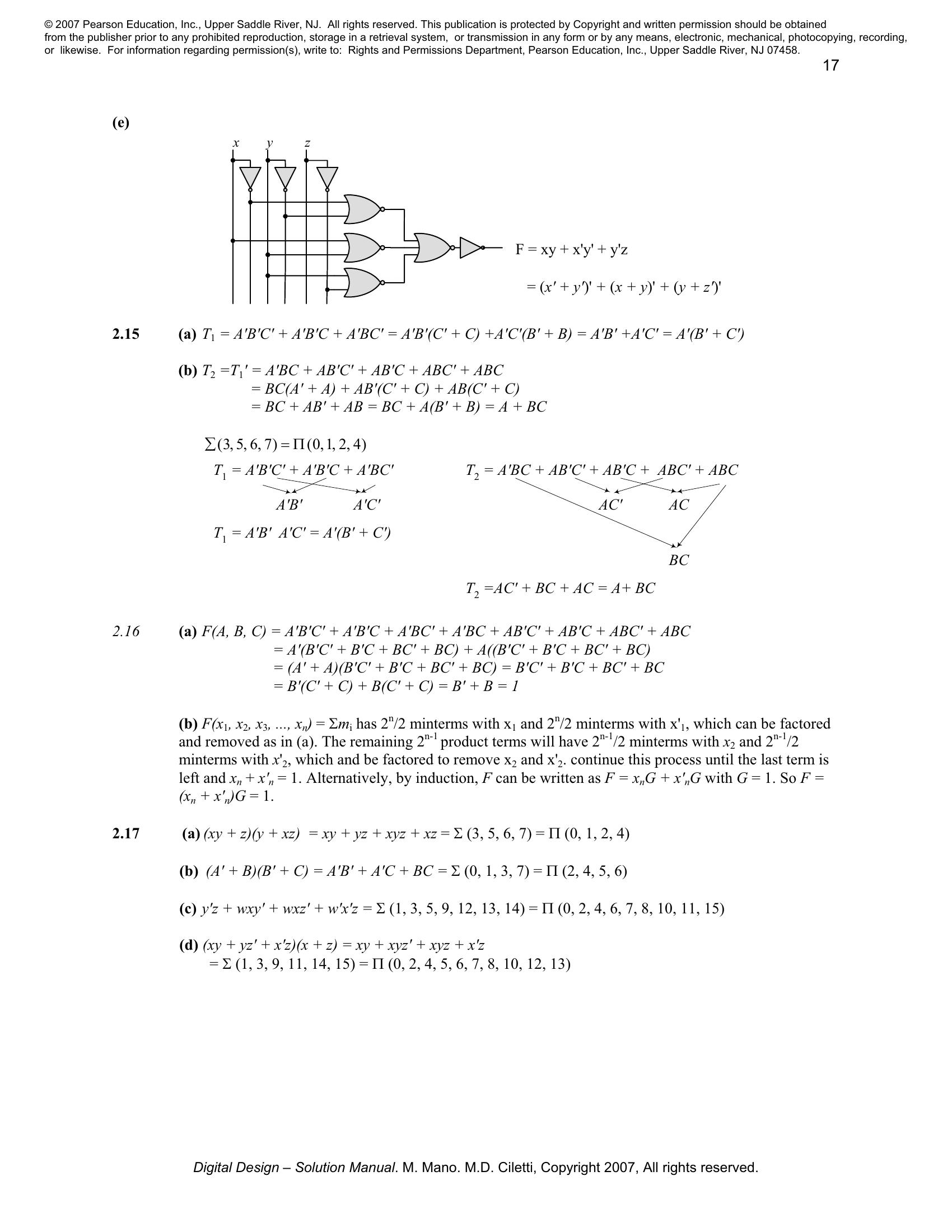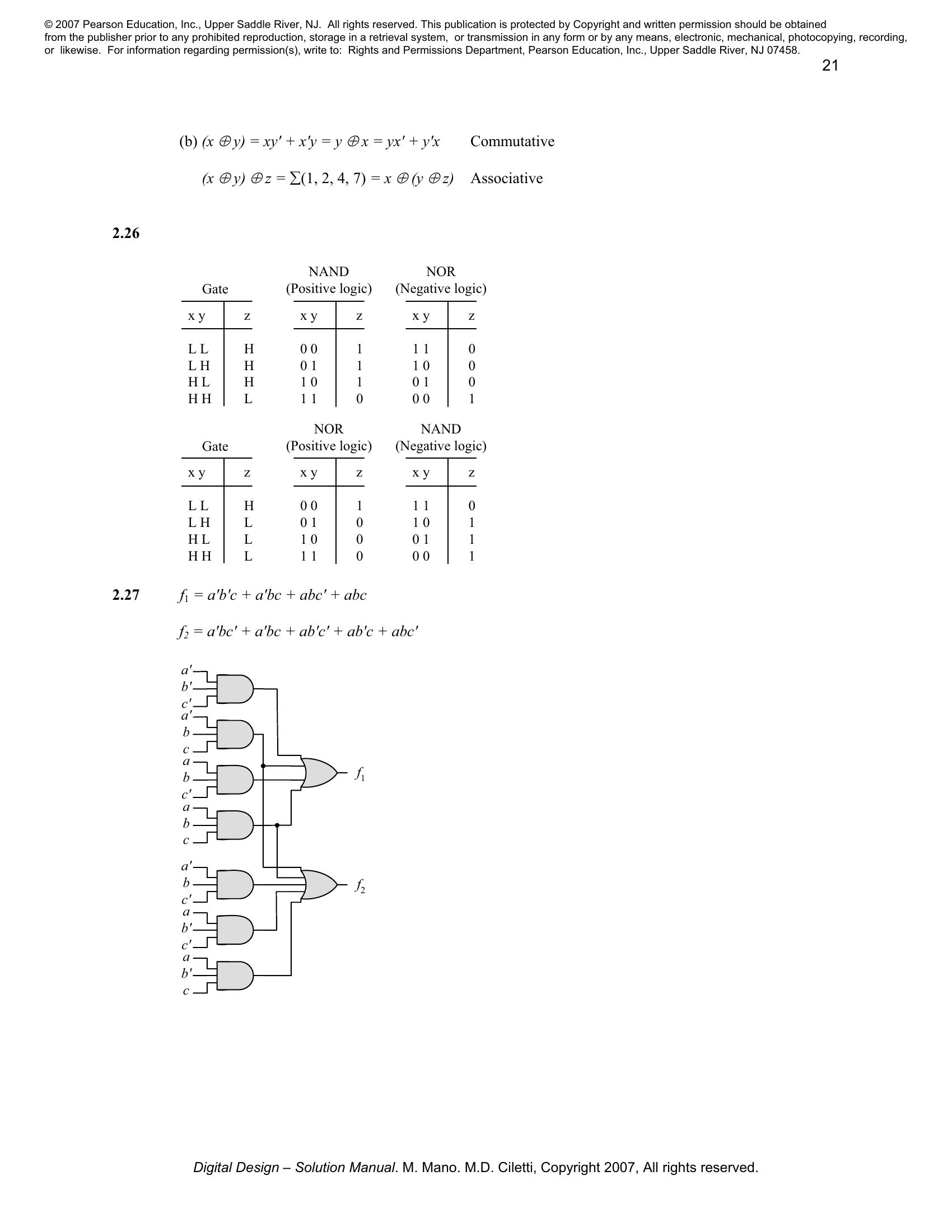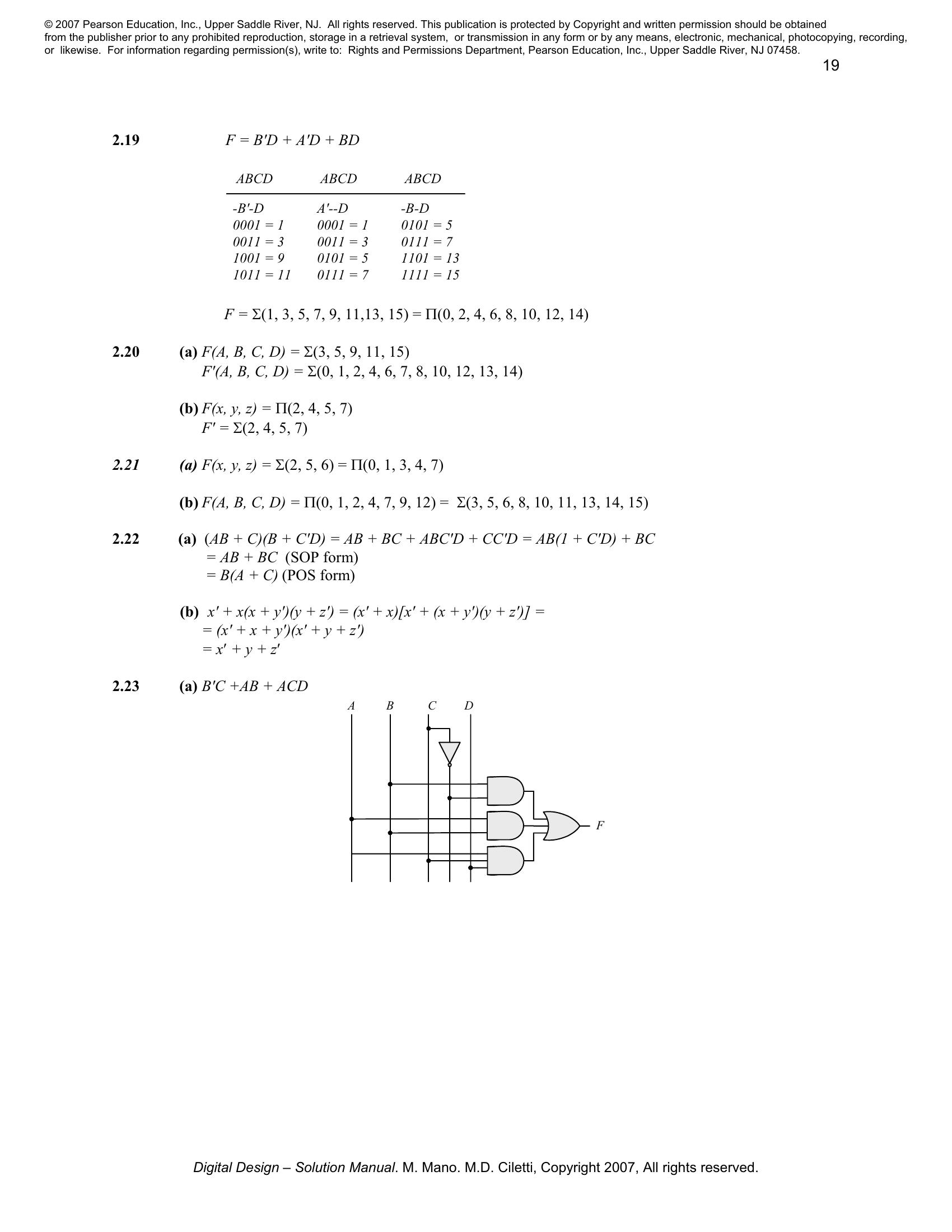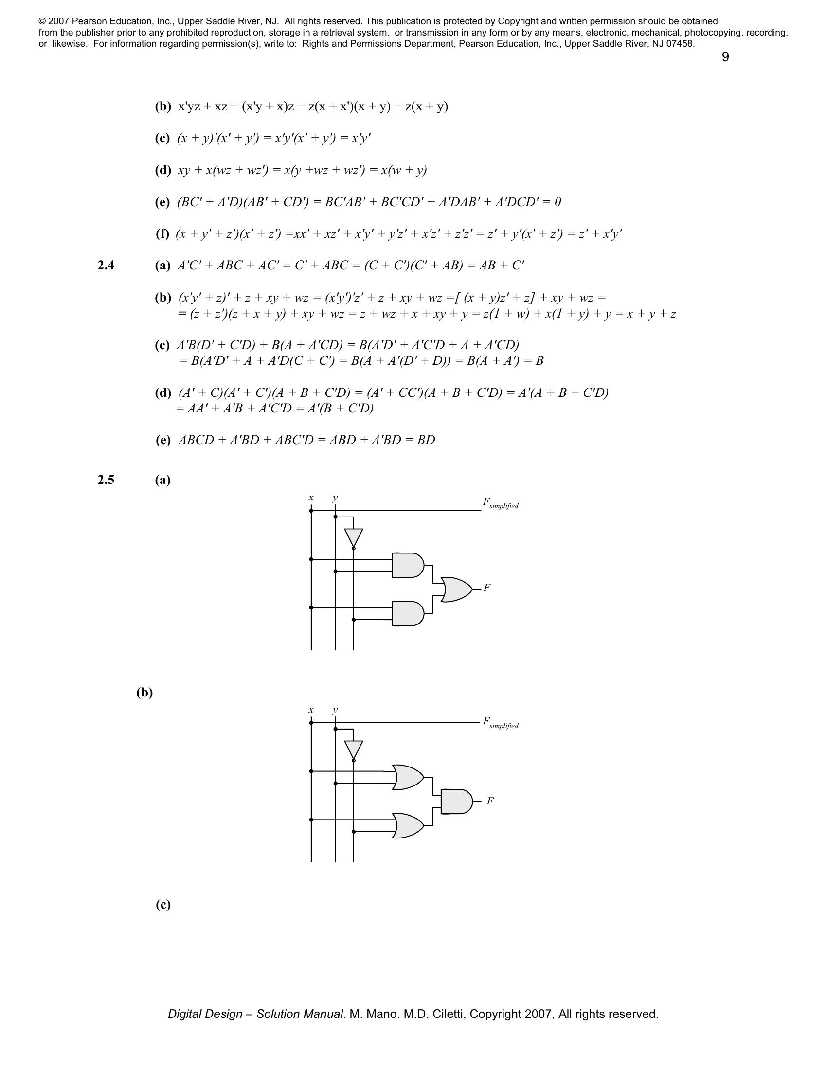 Solution manual to Digital Logic And Computer Design by M. Morris Mano (Chapter 2)