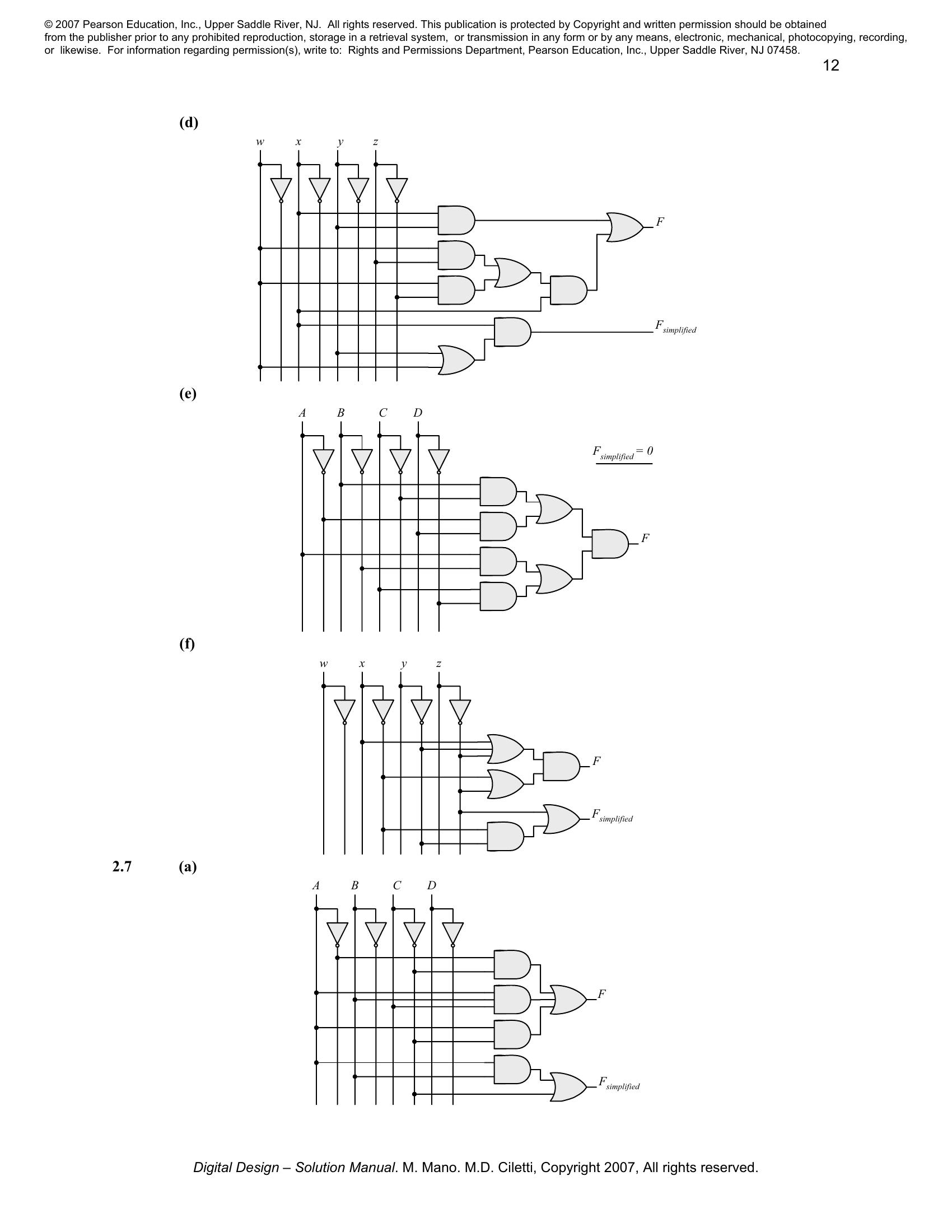 Solution manual to Digital Logic And Computer Design by M. Morris Mano (Chapter 2)