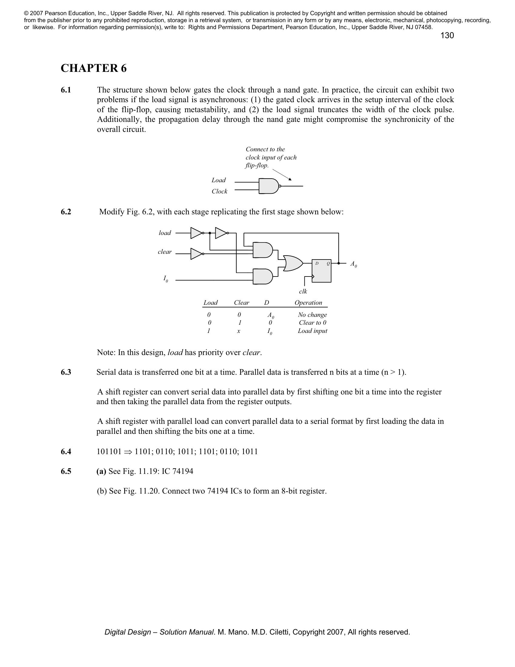 Solution manual to Digital Logic And Computer Design by M. Morris Mano (Chapter 6)