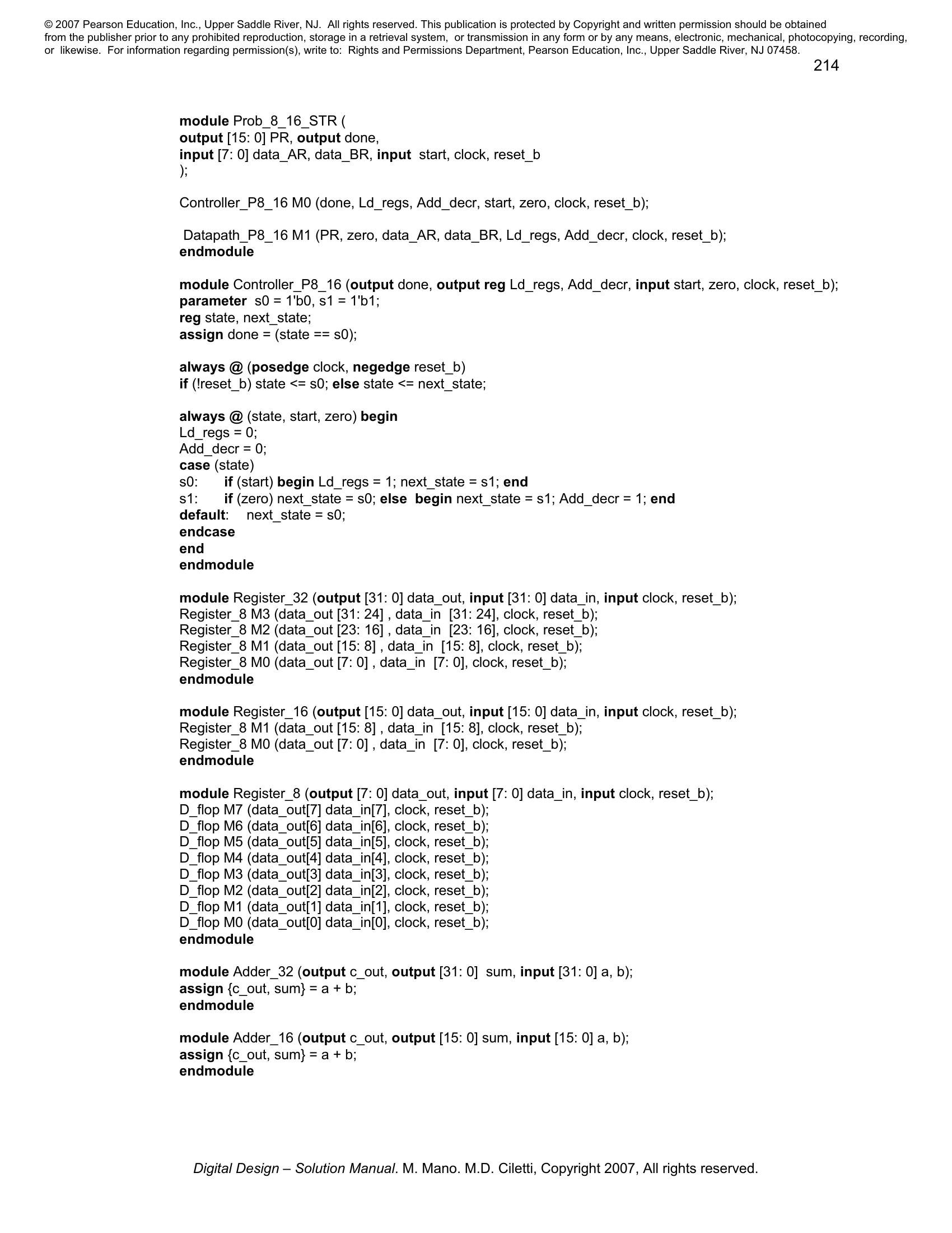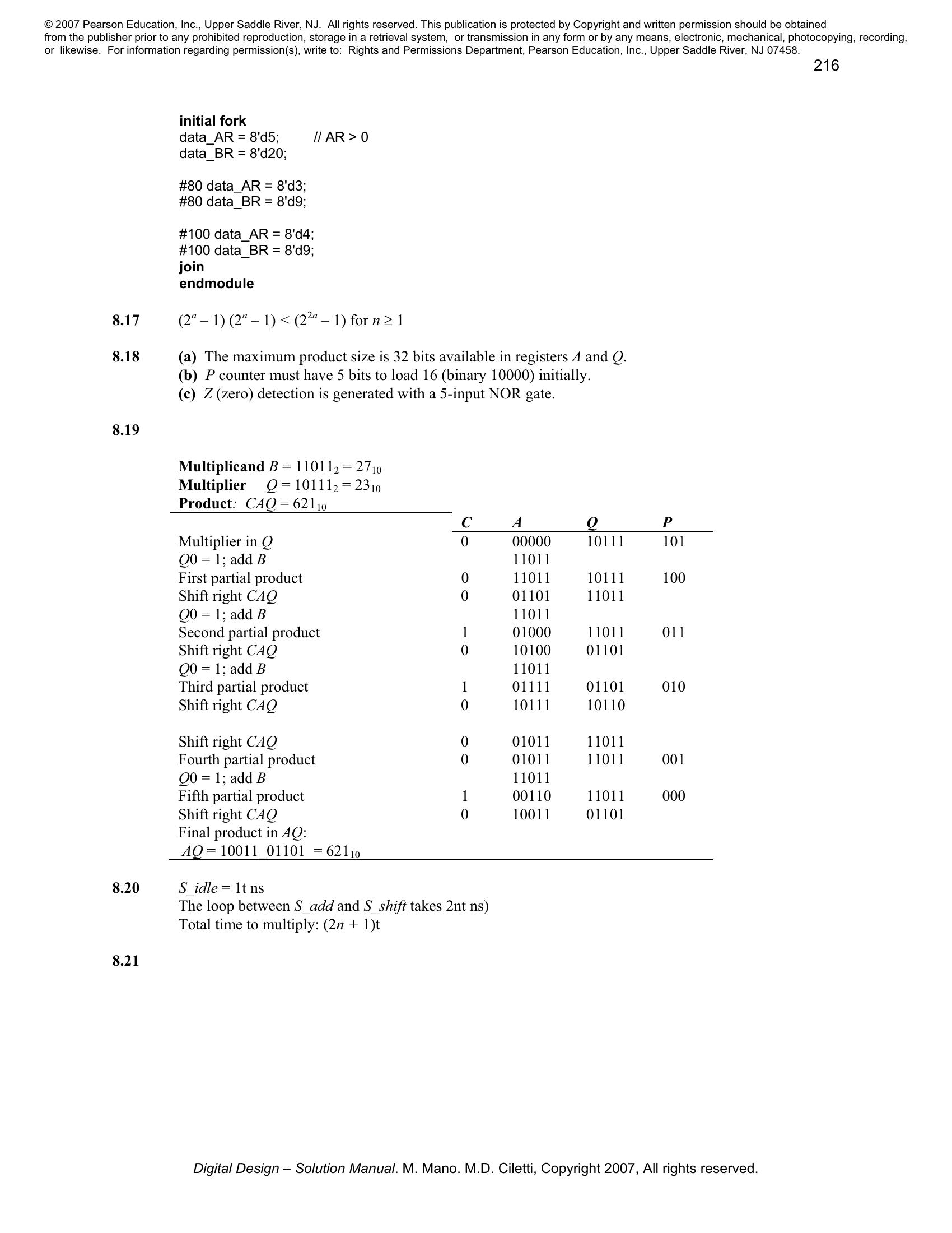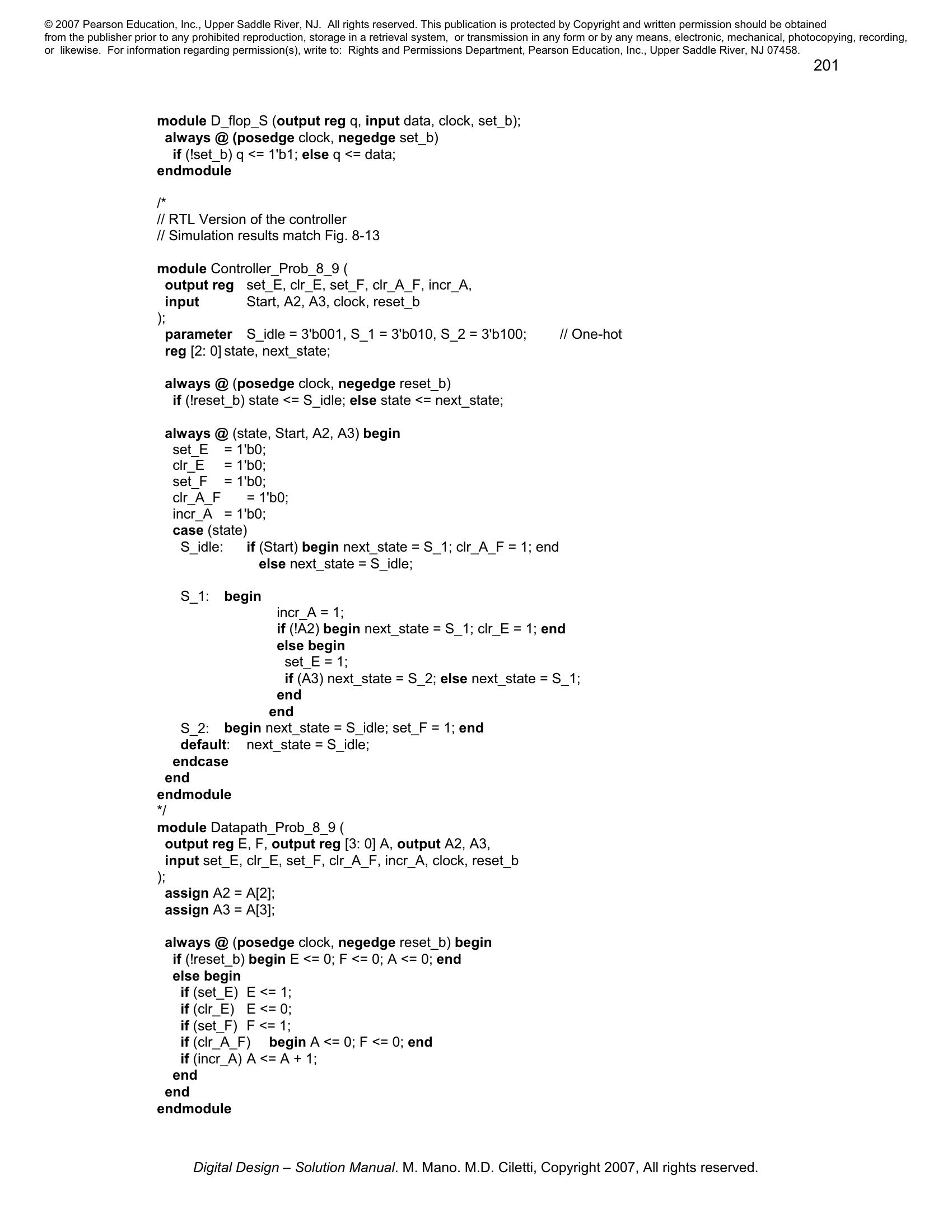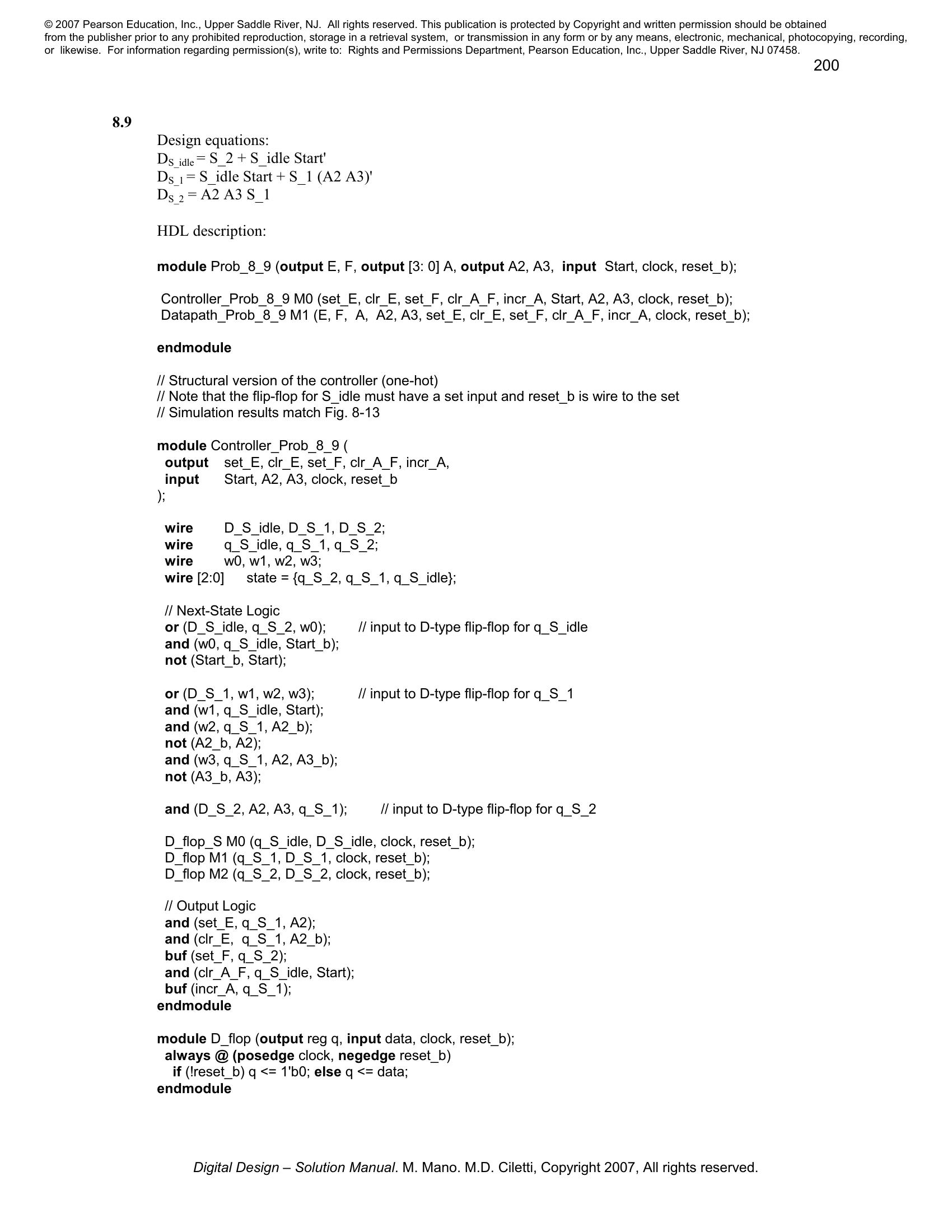 Solution manual to Digital Logic And Computer Design by M. Morris Mano (Chapter 8)