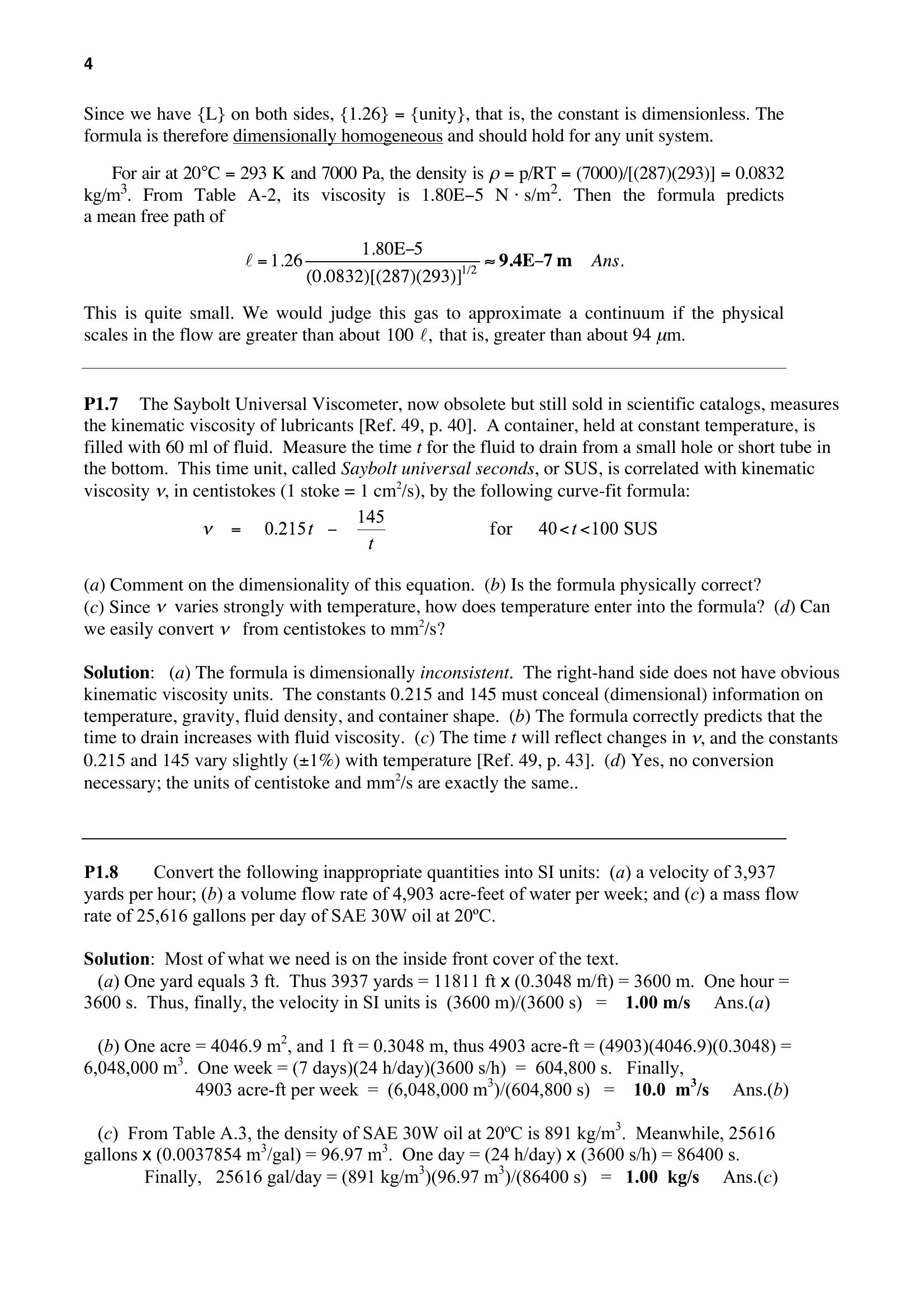 Solution manual to Fluid Mechanics 7th Edition, Frank M. White (Chapter 1) 본문