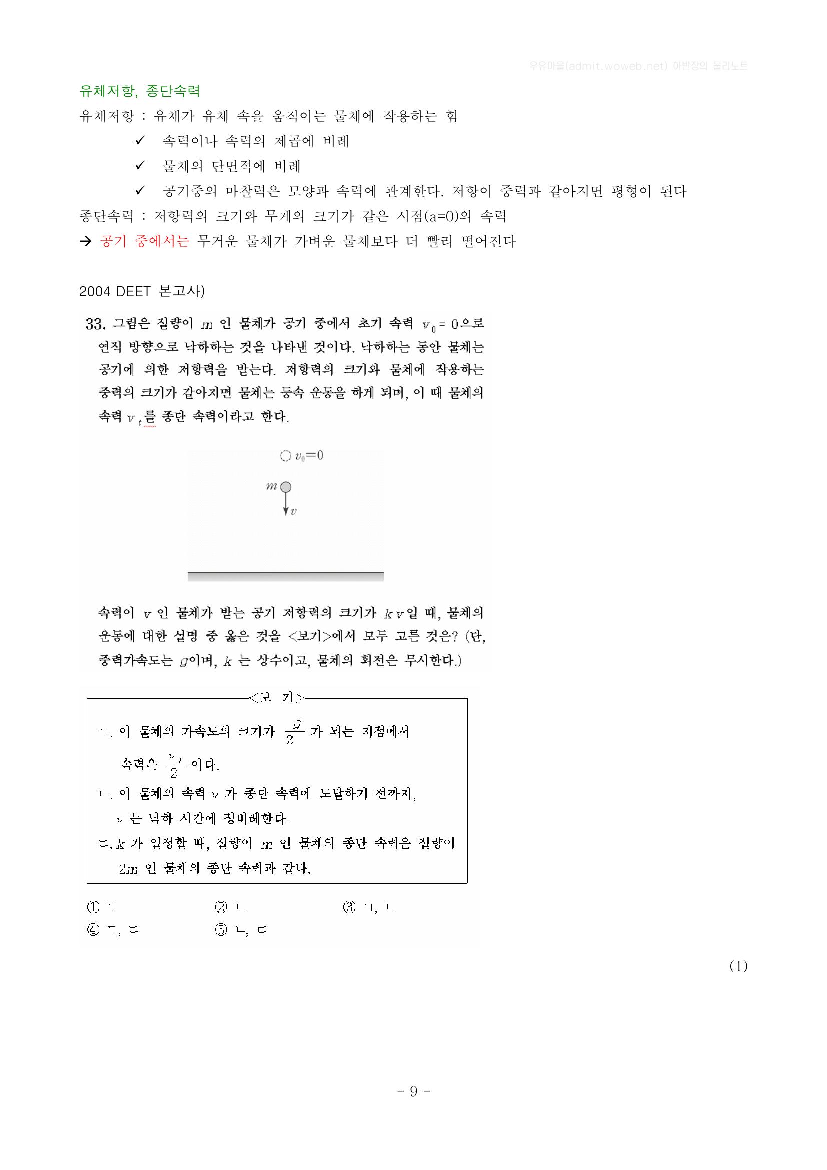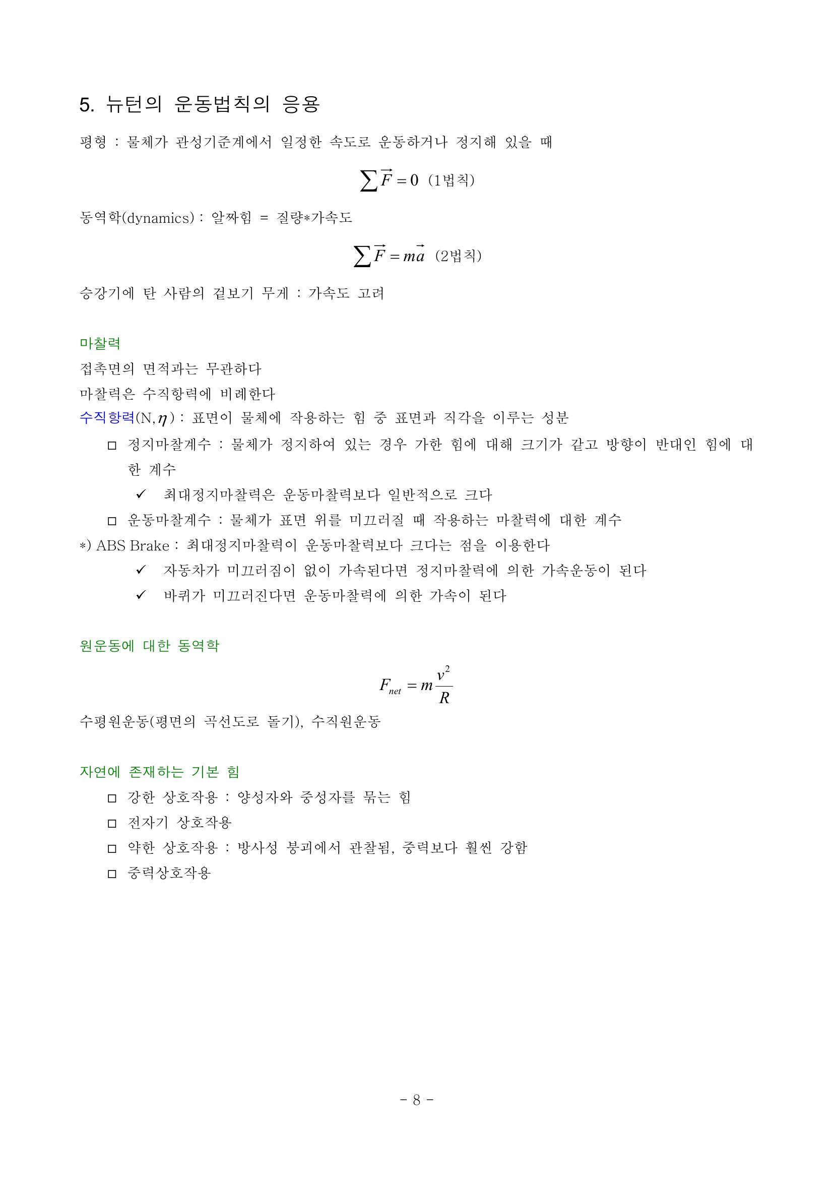 마찰력, 수직항력, 원운동, 유체저항, 종단속력 본문