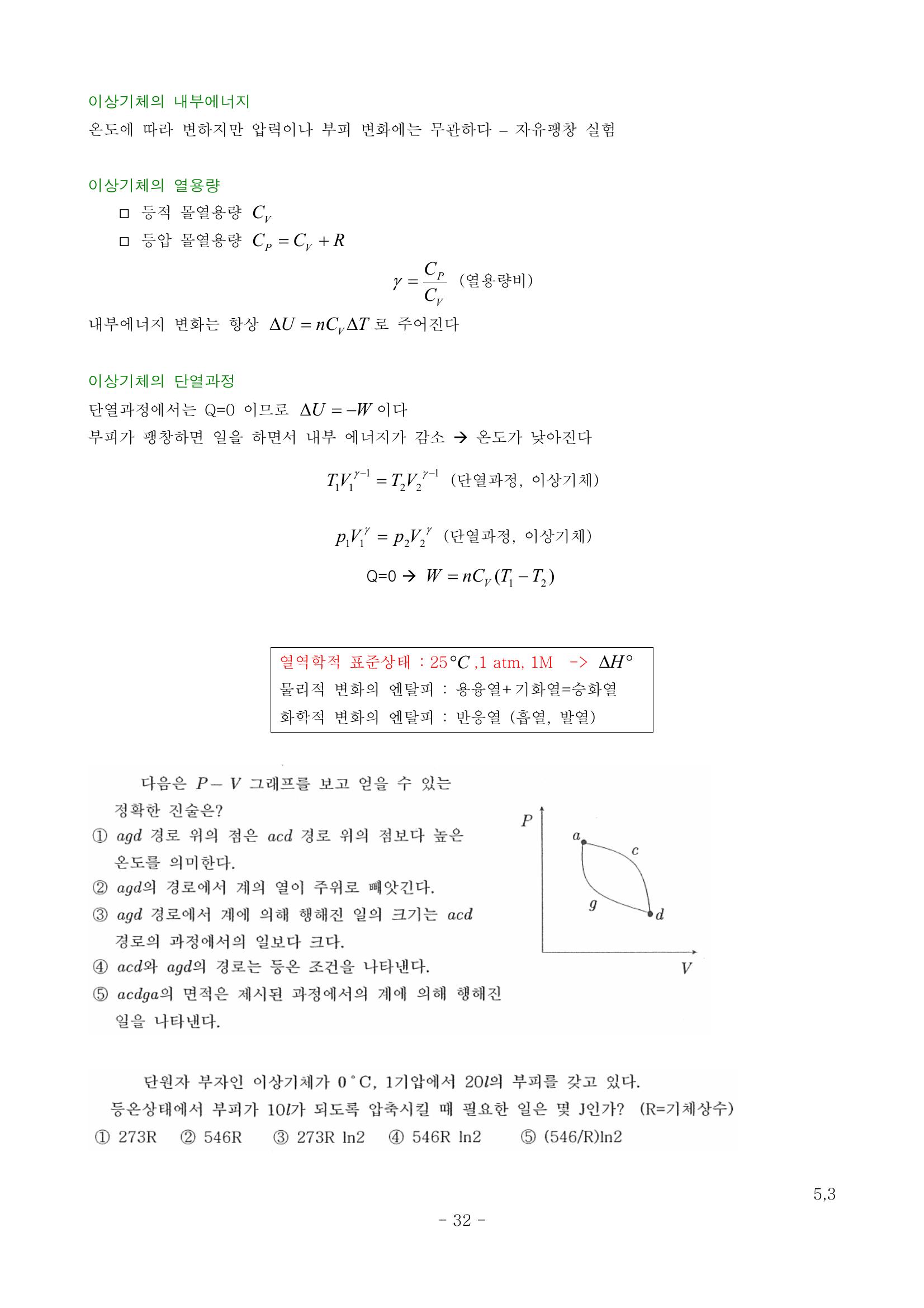 | 물질의 열적 성질, 이상 기체 방정식, 반데르 발스 방정식, pV도표/등온선, 평균 병진 운동 에너지, 분자 사이의 충돌, 열용량, 정적물용량, 에너지 등분배정리, 분자 속력 (0) |