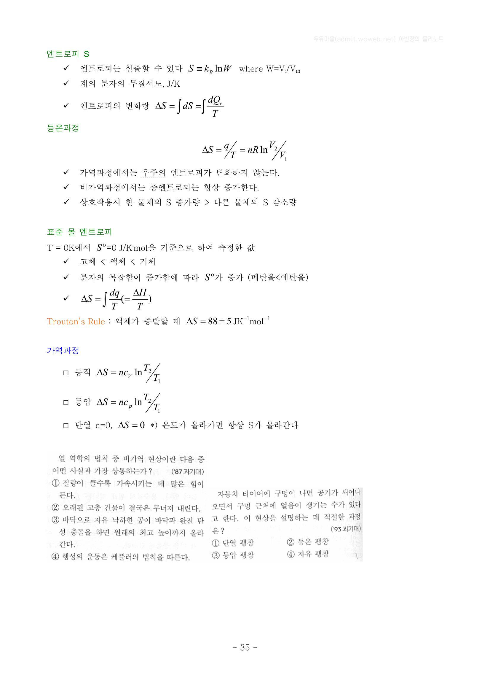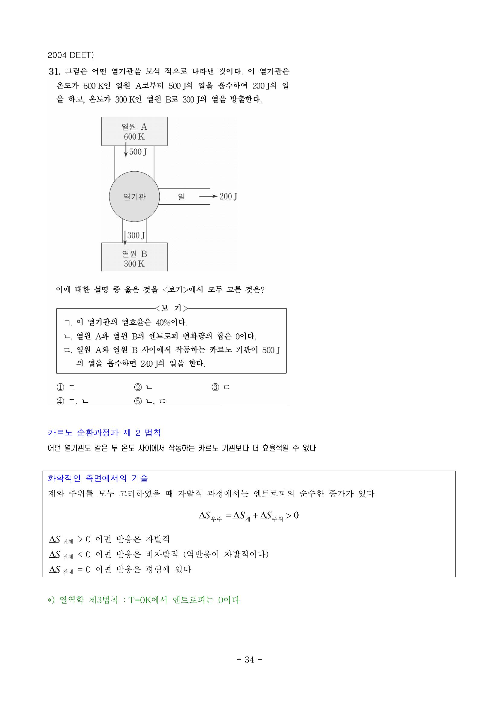 열역학 제 2법칙, 열기관, 내연기관, 냉장고, 카르노 순환과정, 카르노 기관, 엔트로피, 등온과정, 표준 몰 엔트로피, 가역과정