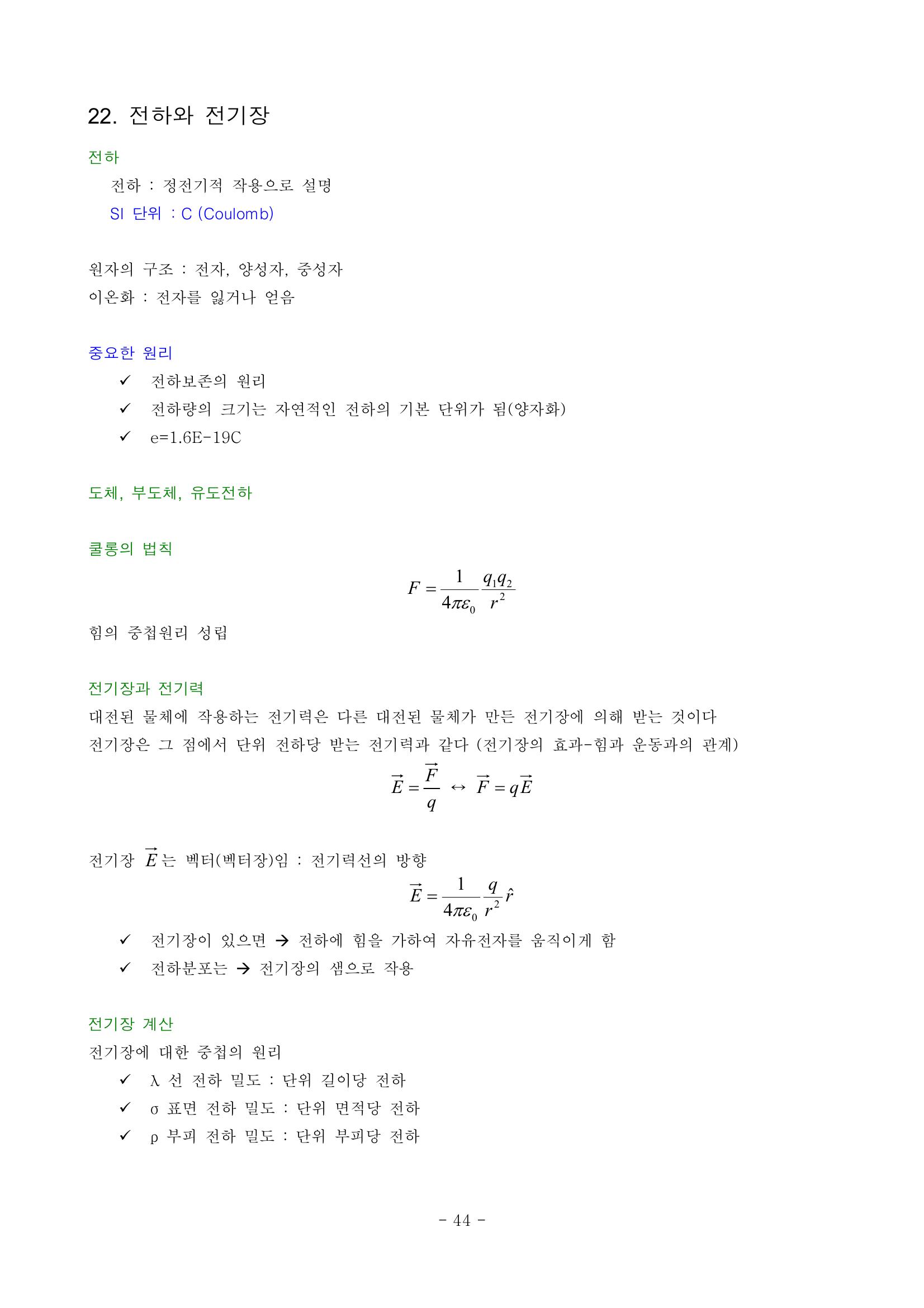 전하와 전기장, 도체, 부도체, 유도전하, 쿨롱의 법칙, 전기장 계산, 전기력선, 전기 쌍극자 모멘트