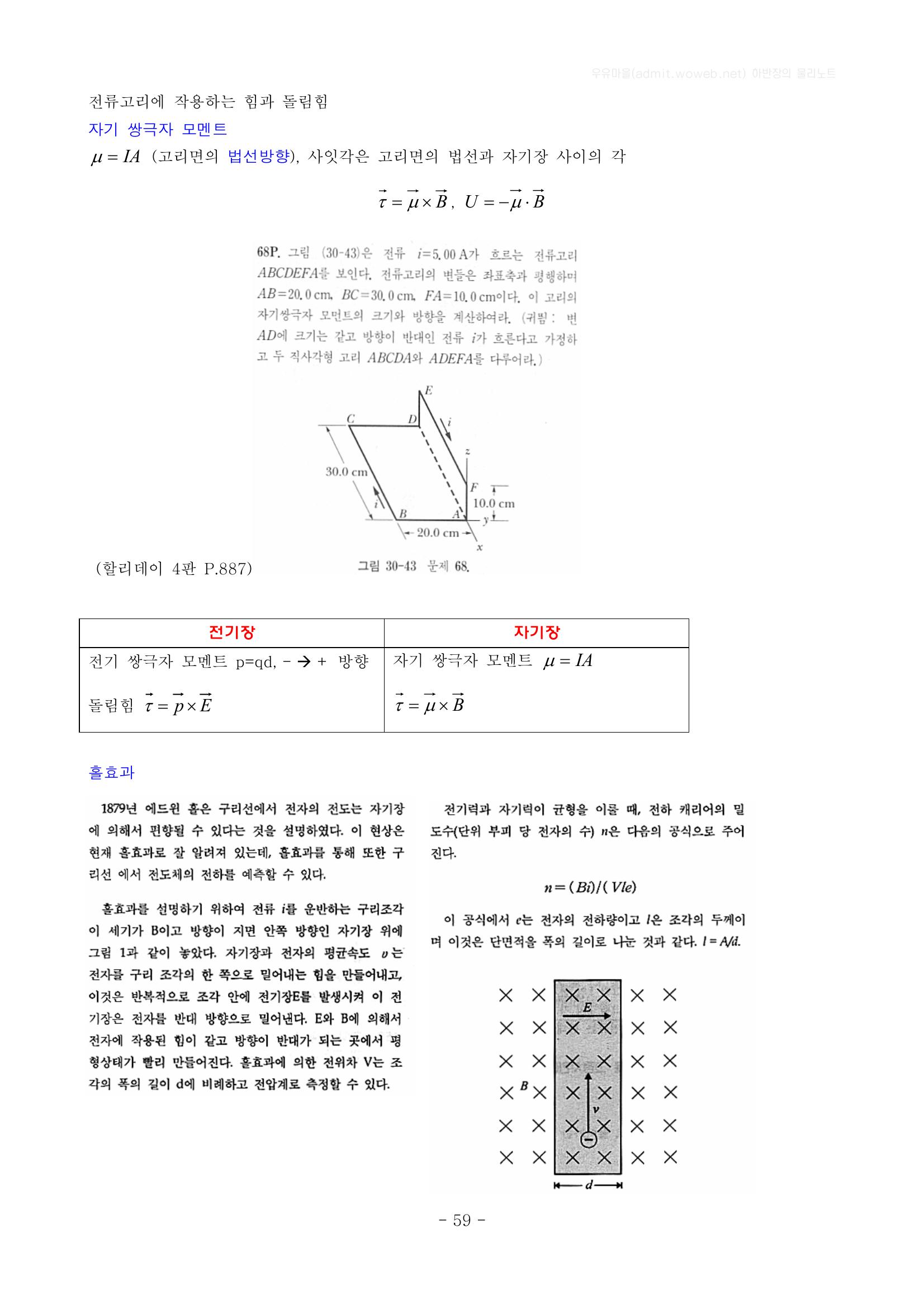 자기장과 자기력, 자기력선과 자기선속, 자기 쌍극자 모멘트, 홀 효과 본문