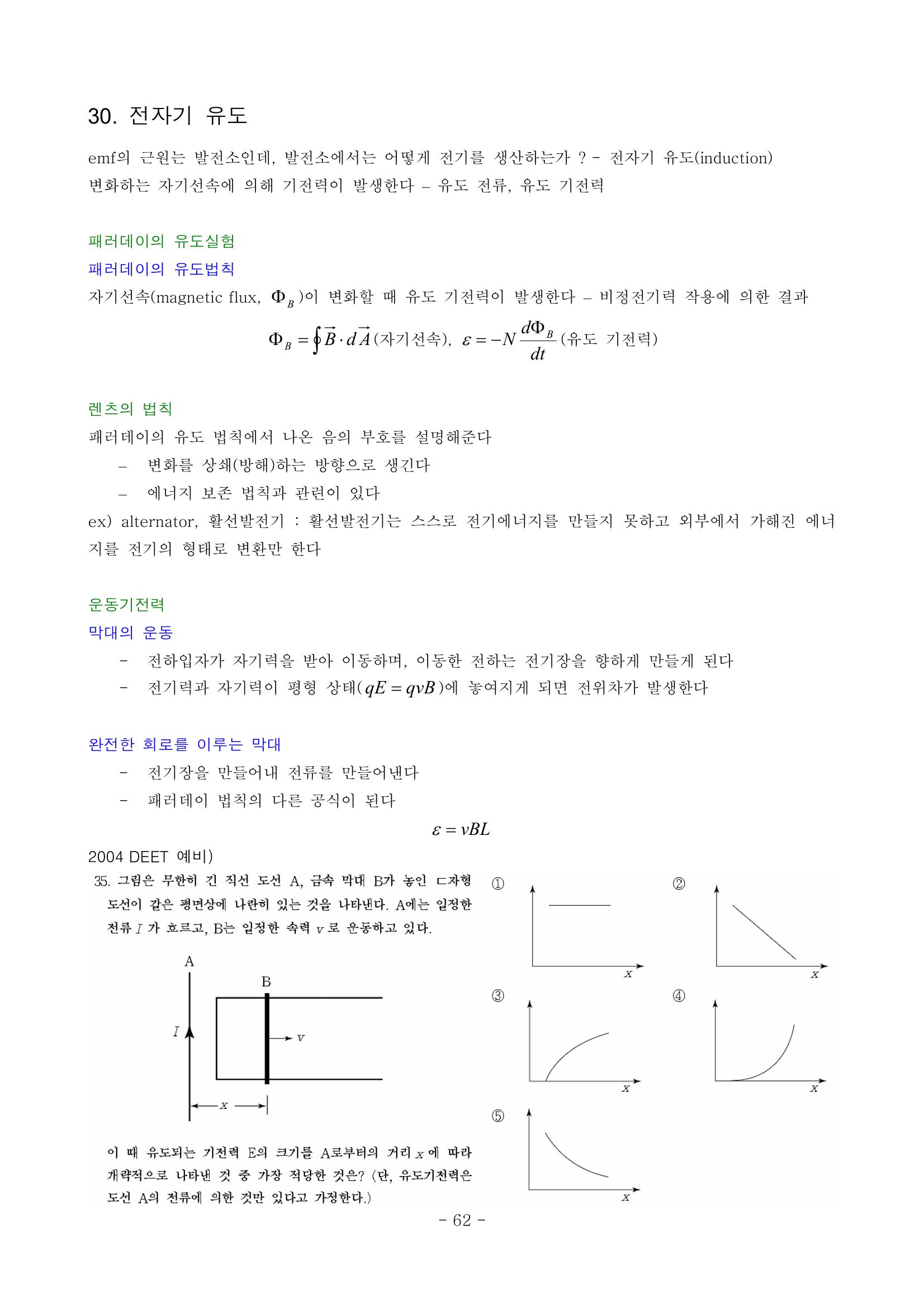 전자기 유도, 페러데이의 유도실험, 렌트의 법칙, 운동기전력, 유도전기장, 솔레노이드, 맥스웰 방정식