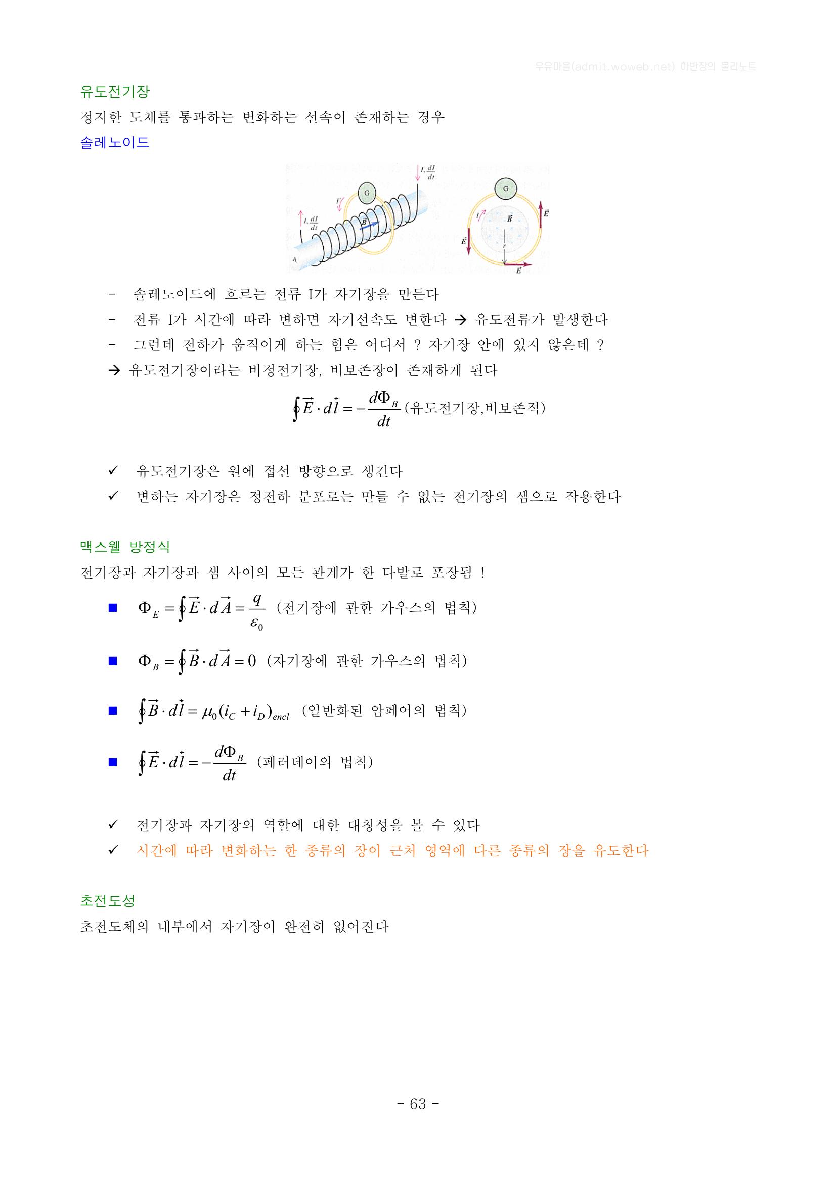 전자기 유도, 페러데이의 유도실험, 렌트의 법칙, 운동기전력, 유도전기장, 솔레노이드, 맥스웰 방정식