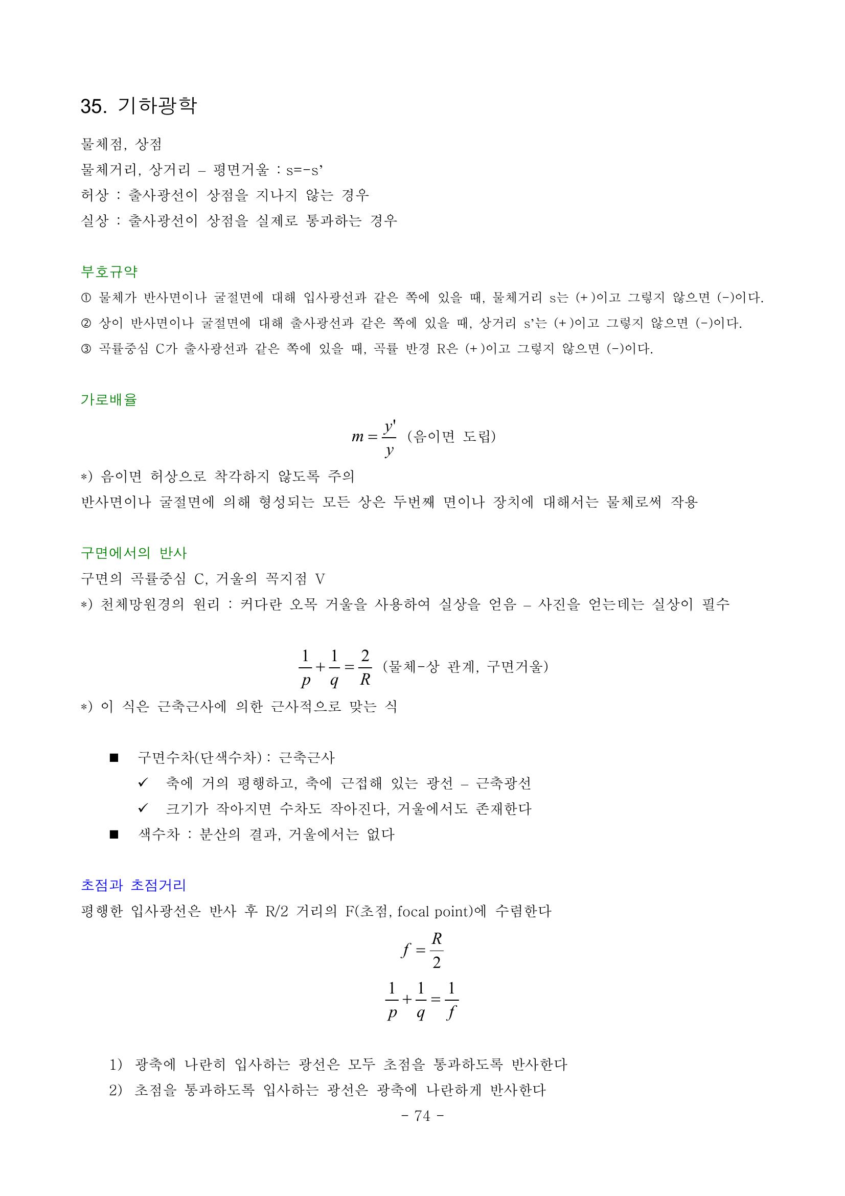 기하광학, 부호규약, 자로배율, 구면에서의 반사, 초점과 초점거리, 구면거울, 볼록거울, 구면에서의 굴절, 볼록렌즈, 오목렌즈, 렌트에 대한 작도방법 본문