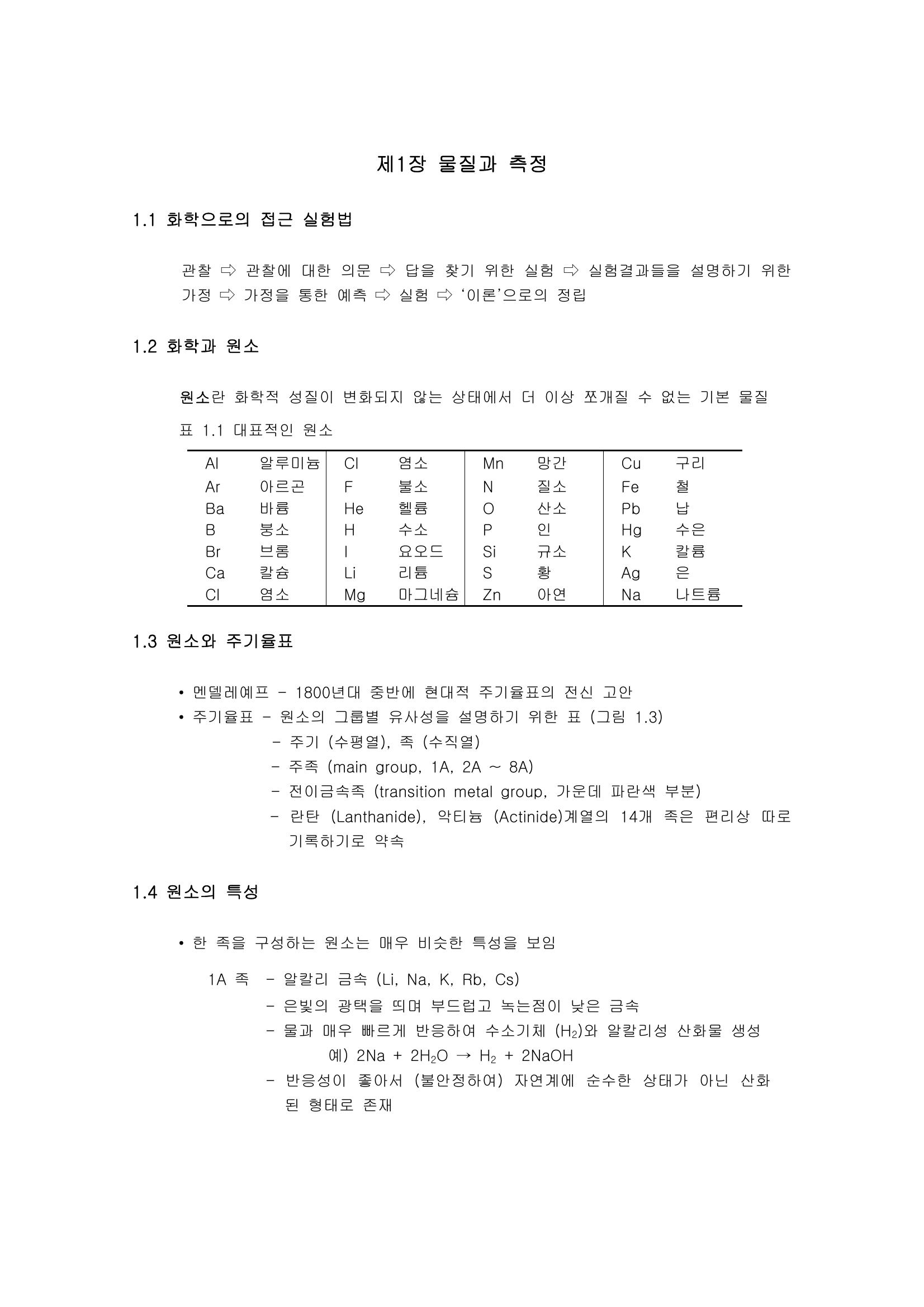 물질과 측정 : 화학과 원소, 주기율표, 원소의 특성, 일반화학 단위 정리 본문