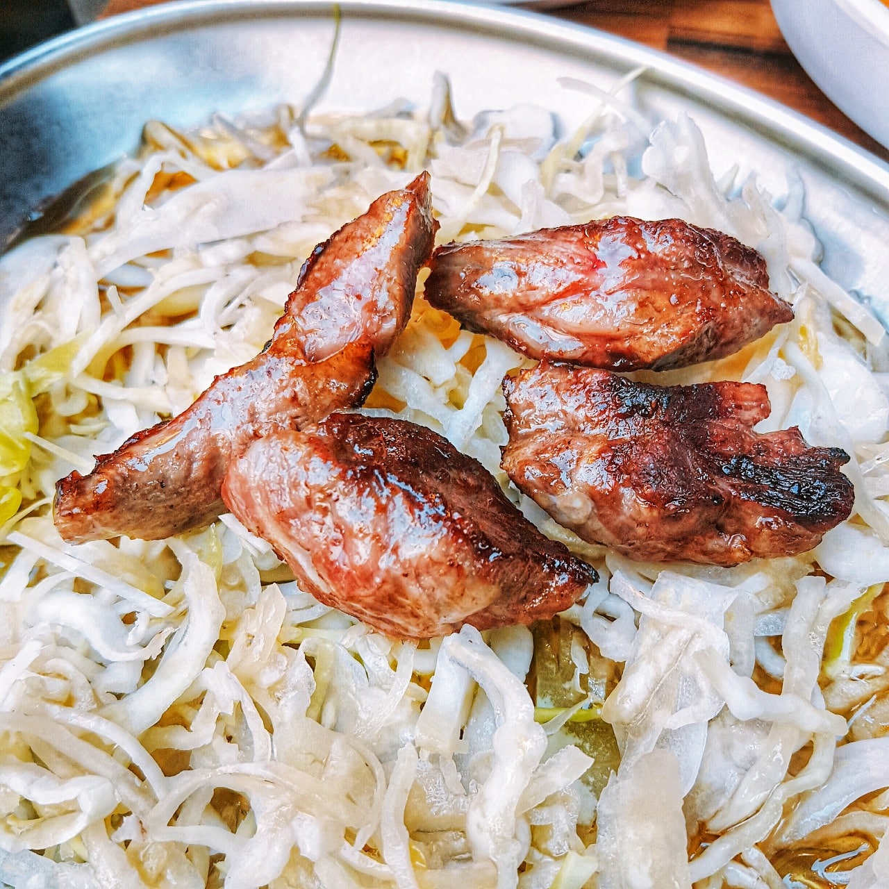 When you order all-you-can-eat-beef, they'll give you a plate full of meat, assorted part of beef. After you finish them, you can choose whatever part of beef you love. Well, you have to use body language. Just point your fingers to part of beef you want to have more! lol