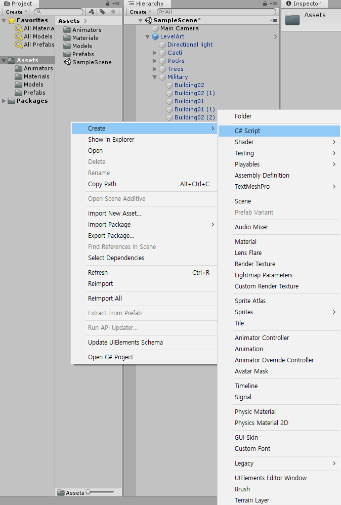 3. 프로젝트 창에서 Create > C# Script 클릭, 이름을 Jumper로 변경한 후 열기!