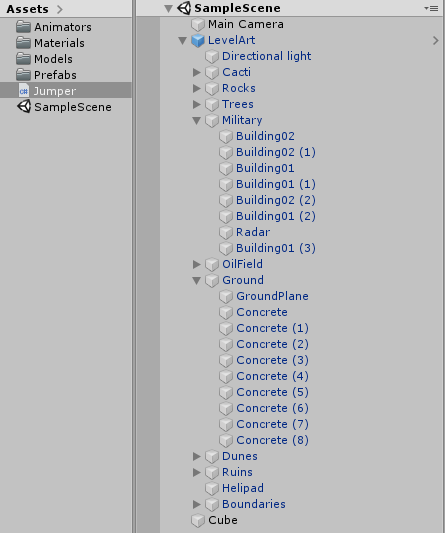 1. Hierarchy 탭에서 3D Object 큐브를 하나 생성하기