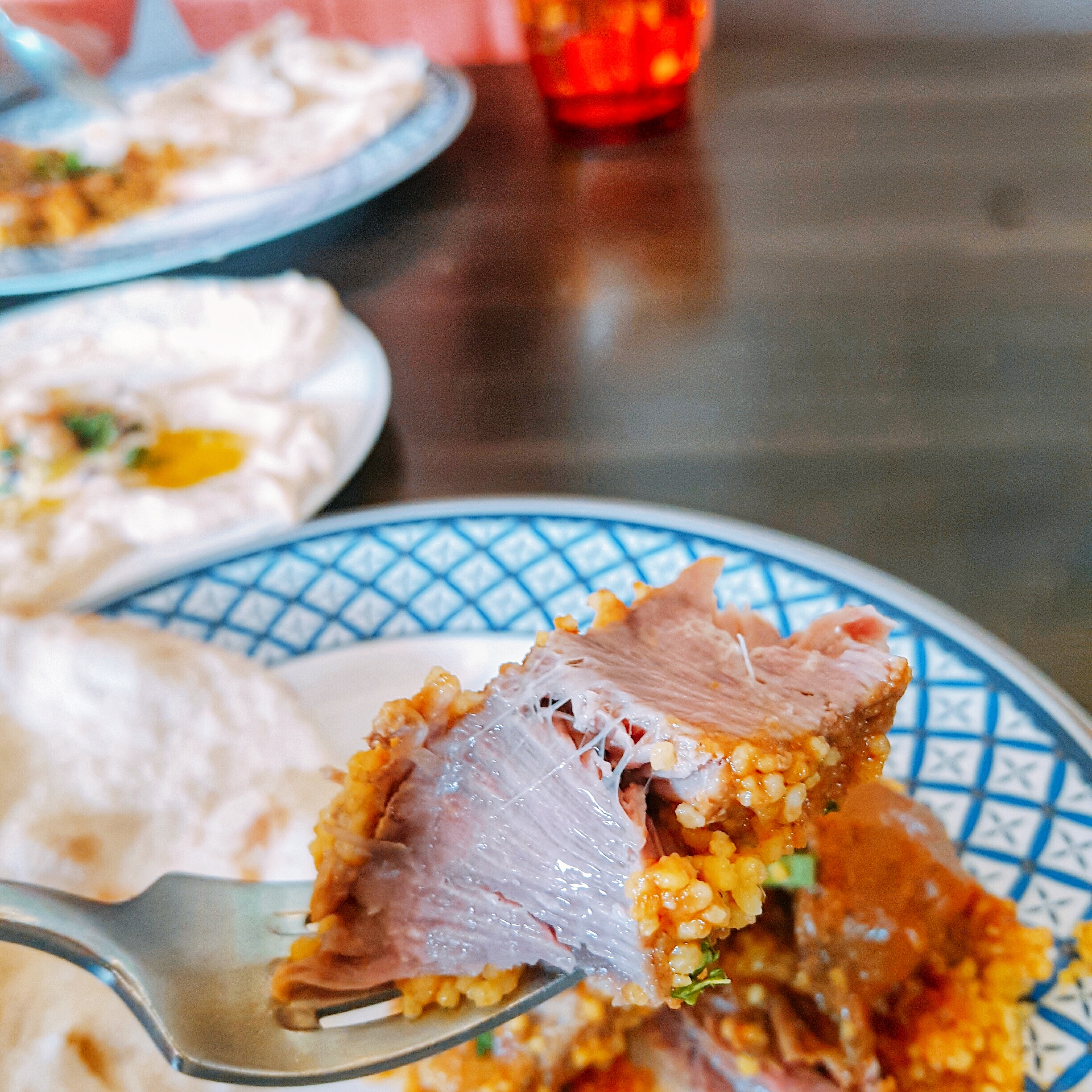 The lamb was realllly tender. You won't need a knife, or even a fork. A spoon will suffice.