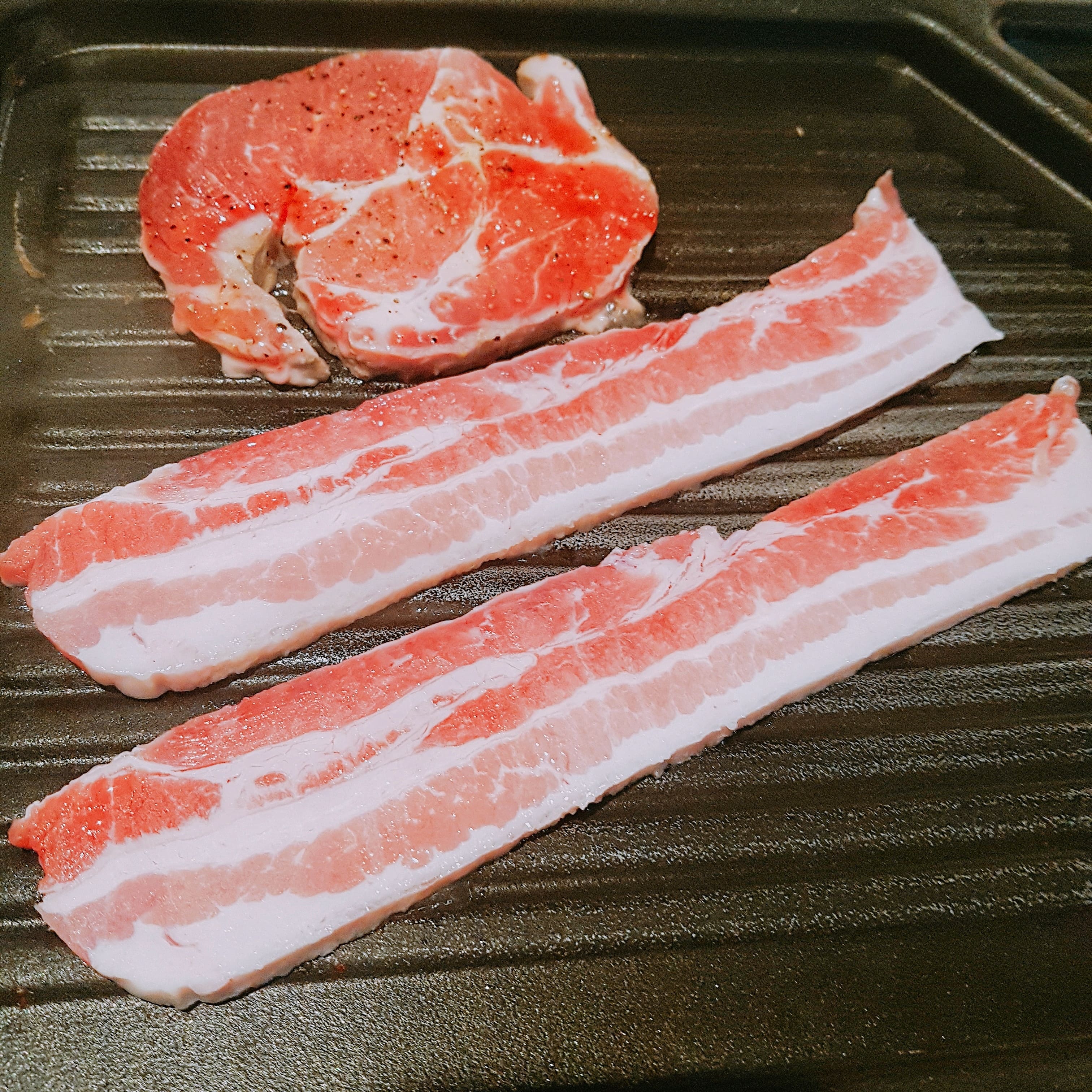 So these are smoked meat I mentioned earlier. Above is samgyeopsal, and below is galbi.