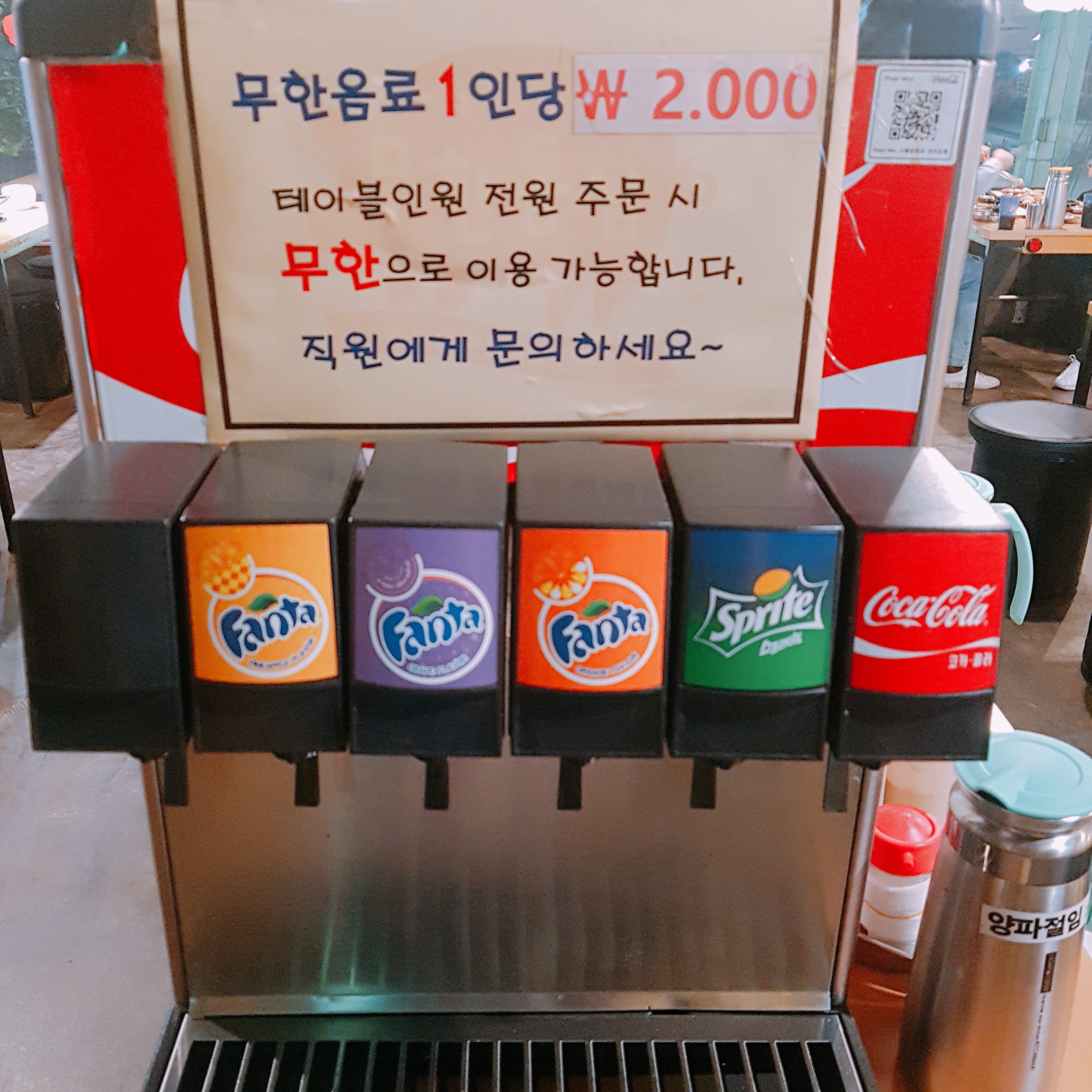 Drink bar costs addition 1.7$ per person! (2000 Won in Korean currency)