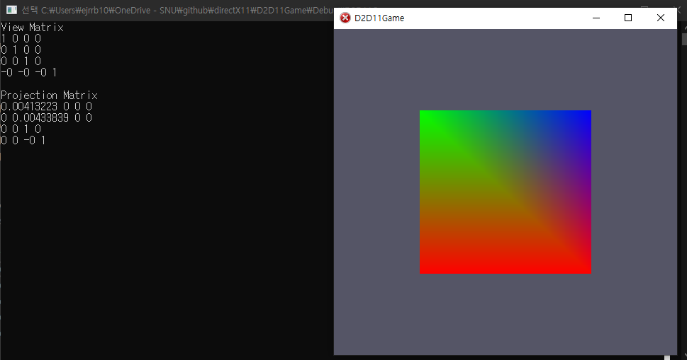 DirectX 11 2D 게임 프로그래밍 - 10. 행렬을 이용한 공간 생성(view, projection) 본문
