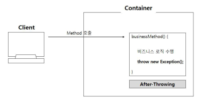 포인트컷으로 지정한 비즈니스 메소드가 실행되는 도중에 예외(Exception)이 발행한 경우에 동작하는 어드바이스이다.