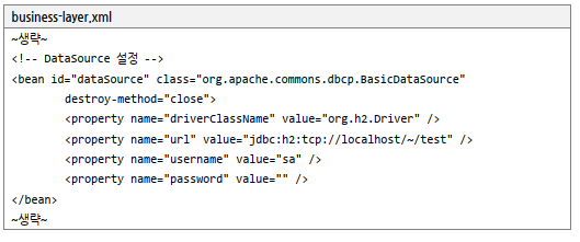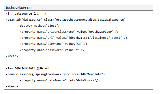 JdbcTemplate 객체가 사용할 DataSource를 <bean> 등록하여 스프링 컨테이너가 사용하도록 해야 한다.