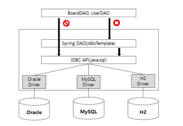 JdbcTemplate은 JDBC의 반복적인 코드를 제거하기 위해 제공하는 클래스다. 따라서 DAO 클래스에서는 JdbcTemplate 클래스가 제공하는 템플릿 메소드를 호출하여 DB 연동을 간단하게 처리할 수 있다.