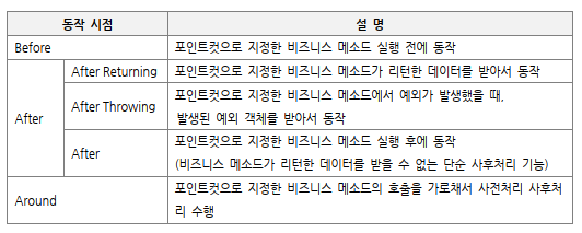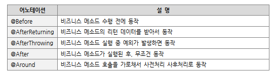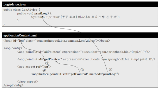 중요한 것은 반드시 포인트컷으로 지정된 메소드가 호출되어야지, 조인포인트에 해당하는 메소드가 호출될 때는 아무런 동작이 이루어지지 않는다는 것이다.