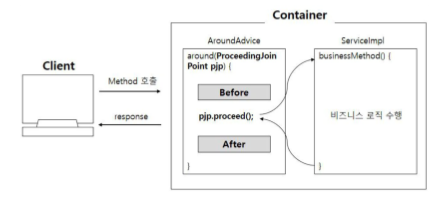 하나의 어드바이스가 비즈니스 메소드 실행 전과 후에 모두 동작하여 로직을 처리하는 경우