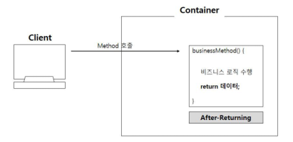 After와는 다르게, 메소드에 argument를 전달해 줄 수 있다. 또한, 메소드가 리턴한 데이터를 받아서 동작하므로, 예를 들어 사후 처리 기능에서 로그인 성공한 사용자의 권한을 체크할 수 있다.